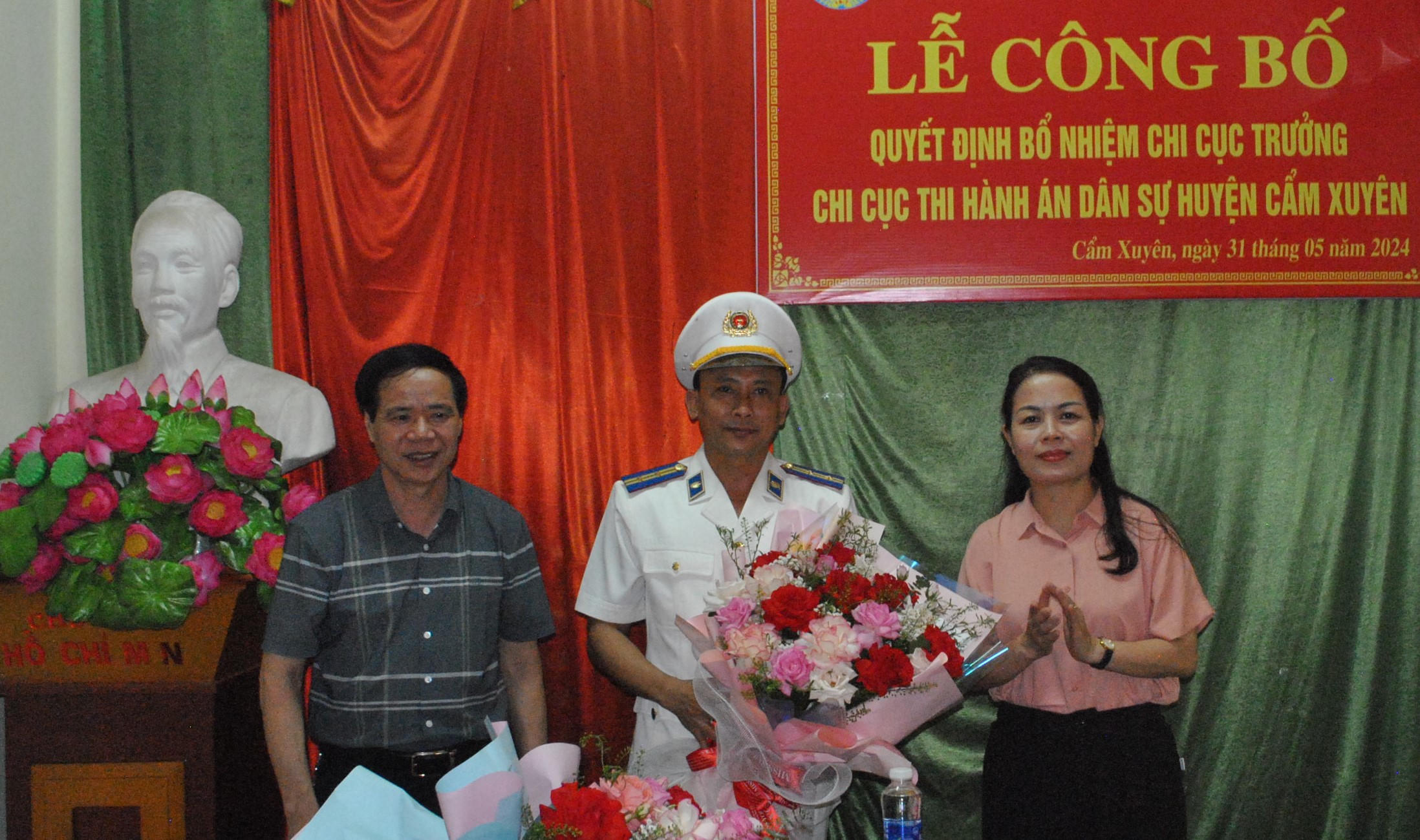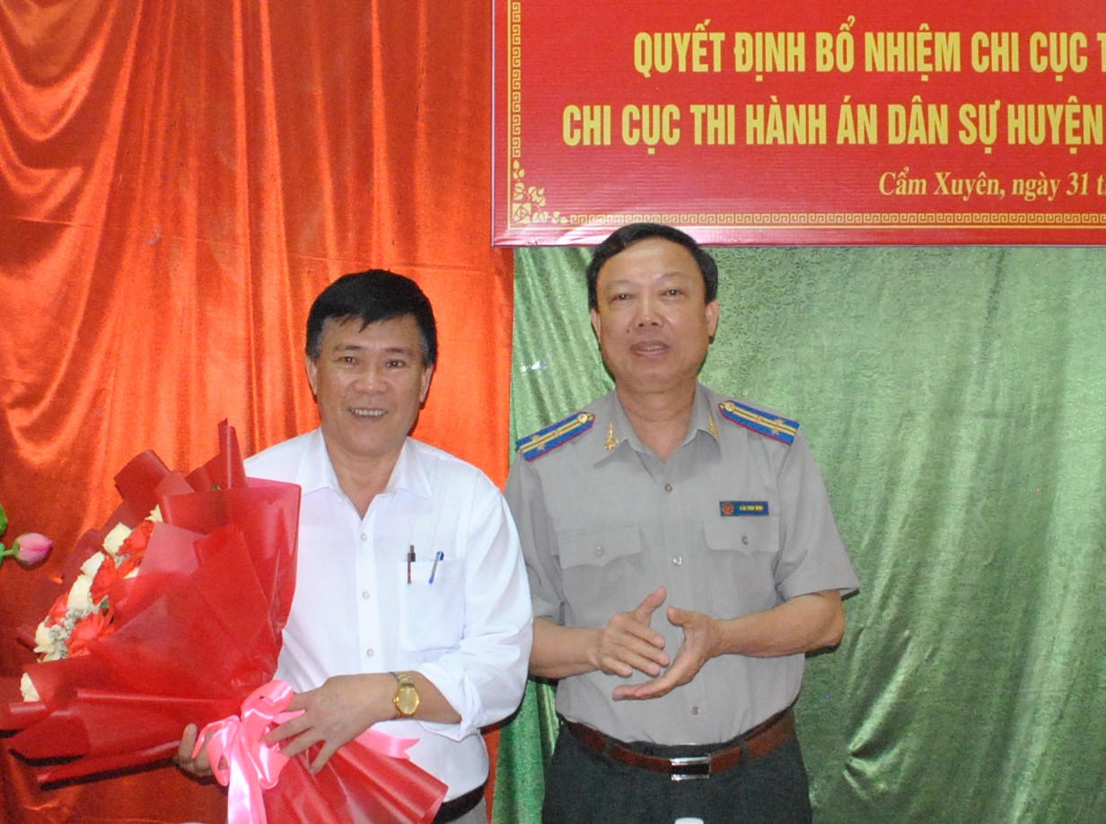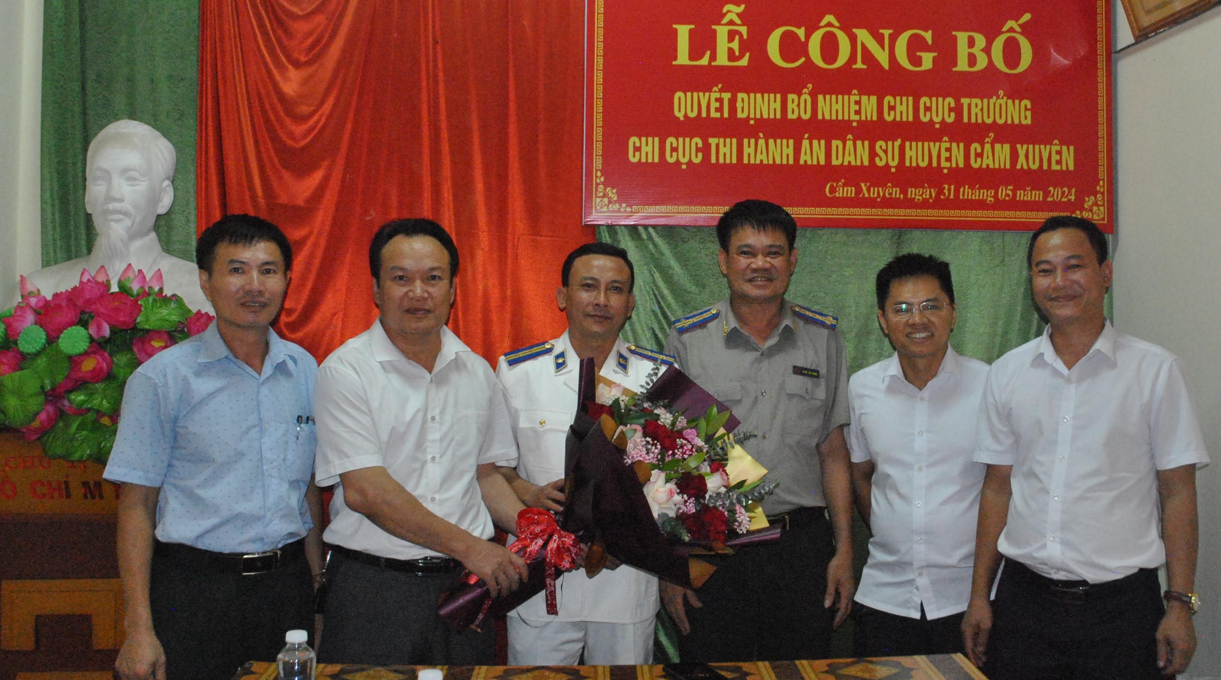 Được sự ủy quyền của Tổng cục trưởng Tổng cục THADS, ngày 31/5/2024, tại Chi cục THADS huyện Cẩm Xuyên, Cục THADS tỉnh Hà Tĩnh đã tổ chức Lễ trao quyết định bổ nhiệm ông Lê Xuân Tùng, Chấp hành viên sơ cấp, Chánh Văn phòng Cục THADS tỉnh Hà Tĩnh giữ chức vụ Chi cục trưởng Chi cục THADS huyện Cẩm Xuyên, tỉnh Hà Tĩnh, kể từ ngày 1/6/2024. Thời hạn giữ chức vụ 5 năm kể từ ngày được bổ nhiệm.