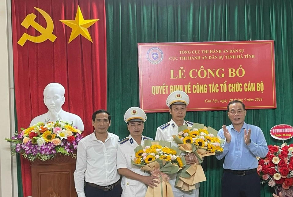 Trước đó vào ngày 20/5/2024, tại Chi cục THADS huyện Can Lộc, Cục THADS tỉnh Hà Tĩnh cũng đã tổ chức Lễ trao quyết định bổ nhiệm của Tổng cục trưởng Tổng cục THADS bổ nhiệm ông Nguyễn Viết Quảng, Phó Chi cục trưởng, phụ trách Chi cục THADS huyện Can Lộc giữ chức vụ Chi cục trưởng chi cục THADS huyện Can Lộc, kể từ ngày 20/05/2024 và trao quyết định của Cục trưởng Cục THADS tỉnh Hà Tĩnh bổ nhiệm ông Hồ Thanh Tùng, chấp hành viên sơ cấp Chi cục THADS huyện Can Lộc giữ chức vụ Phó Chi cục trưởng Chi cục THADS huyện Can Lộc, kể từ ngày 20/5/2024.