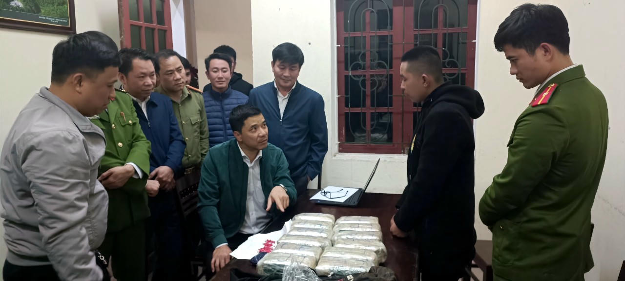 Ngày 18/2, thông tin từ Công an tỉnh Hà Tĩnh cho biết, ngày 16/2, dưới sự chỉ đạo của Thượng tá Nguyễn Hồng Phong – Giám đốc Công an tỉnh Hà Tĩnh, Công an huyện Vũ Quang phối hợp với phòng Cảnh sát điều tra tội phạm về ma túy, Tổ công tác đặc biệt 238, phòng Cảnh sát cơ động, Bộ đội biên phòng tỉnh tiến hành tuần tra, kiểm soát trên các tuyến đường giao thông thuộc khu vực biên giới đoạn đi qua địa phận thôn 1, xã Thọ Điền, huyện Vũ Quang, tỉnh Hà Tĩnh lực lượng chức năng phát hiện, bắt quả tang 2 đối tượng, gồm Đậu Thế Anh (SN 1998) và Nguyễn Văn Tiệp (SN 1996) đều trú tại xã Kim Hoa, huyện Hương Sơn, Hà Tĩnh.