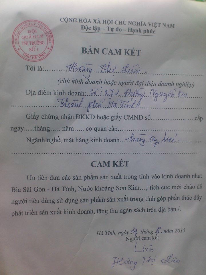 Trước đó, như PLVN đã thông tin, các hộ kinh doanh, các đơn vị trên địa bàn tỉnh Hà Tĩnh đã phải ký vào bản cam kết “lạ” với nội dụng đẩy mạnh sử dụng, tiêu thụ sản phẩm bia Sài Gòn. Cơ quan công quyền của tình này còn có nhiều văn bản "lạ" yêu cầu các nhà hàng đẩy mạnh và ưu tiên dùng bia Sài Gòn.