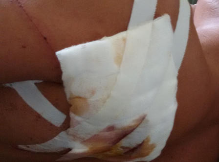 Theo các y bác sỹ khoa Ngoại tổng hợp, bệnh nhân Nguyễn Tiến Minh có nhiều vết thương trong đó có 1 vết ở ngực, bên trái dài khoảng 3cm, 1 vết thương ở phía trên lưng bên trái dài khoảng 4 – 5 cm; vết thương do vật sắc nhọn gây nên, xuyên thấu xương bả vai (vết này phải phẩu thuật ngay trong đêm). Hiện, các bác sỹ đang tiếp tục theo dõi các vết thương của ông Minh nếu như vết thương khiến phổi có dịch thì phải mổ tiếp. Ngoài ra, trên người ông Minh có nhiều vết thương, xây xát khác.