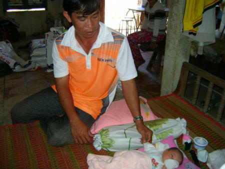 “Mấy hôm nay ông ấy bận rộn vì đứa con nên chưa đưa bé đi khám bệnh gì hết, nhưng thấy sức khỏe con tôi bình thường nên vài ngày nước đợi con chóng lớn vợ chồng tôi mới đưa con đi xét nghiệm, chúng tôi quyết định đặt tên cho con là Lâm Chấn Khang”. Chị Thu vui mừng cho biết.