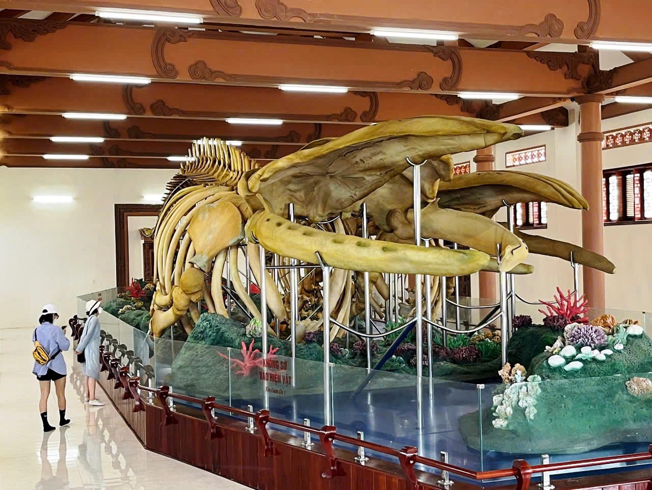 Hai bộ xương cá Ông được trưng bày tại Di tích Lăng Tân (huyện đảo Lý Sơn). |