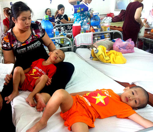 Ngay sau khi Trọng và Nhân nhập viện, đến lượt các cháu Nguyễn Vĩnh Phúc (5 tuổi) và Nguyễn Vĩnh Hảo (3 tuổi) ở thành phố Long Xuyên (An Giang). Cũng như hai bệnh nhân trước, Phúc và Hảo đều có triệu chứng nôn ói, sốt cao và than đau đầu. "Tại bệnh viện ở An Giang, bác sĩ chẩn đoán các bé bị viêm họng nhưng điều trị không khỏi. Chúng tôi lo quá nên xin xuất viện để đưa con đến Nhi Đồng 1", mẹ của hai bệnh nhi nói.