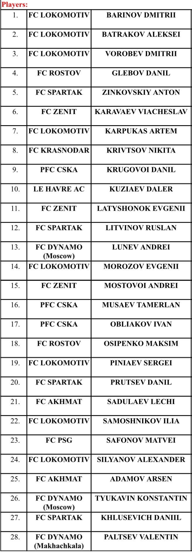 Trước giờ lên đường sang Việt Nam thi đấu giải giao hữu quốc tế LPBank Cup 2024, HLV trưởng Valery Karpin đã công bố danh sách 28 tuyển thủ.