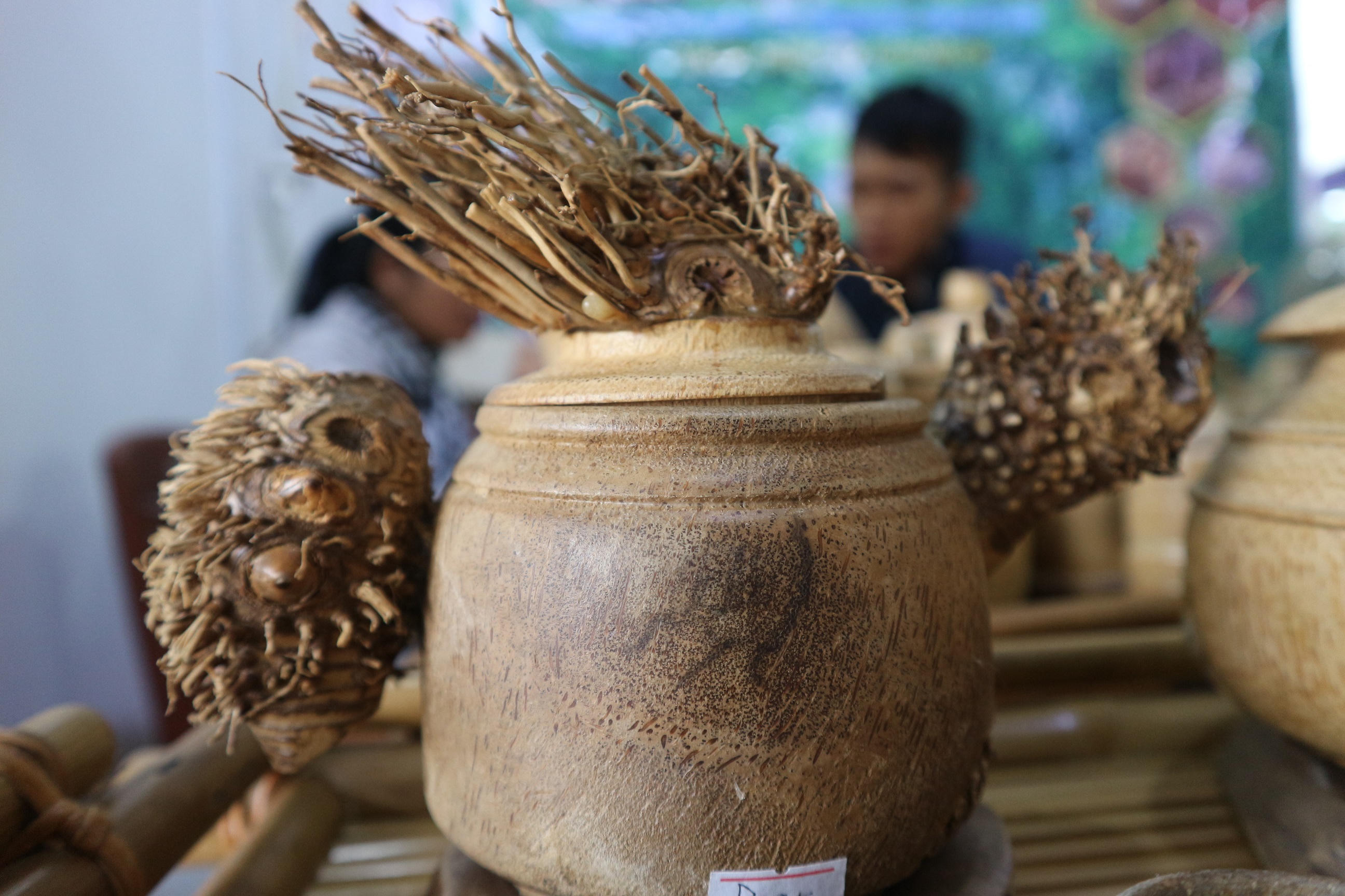 Sau thời gian hoạt động, xưởng mĩ nghệ của anh Tiến thu hút gần chục thợ lành nghề. Lúc cao điểm, nhân công trong xưởng lên đến 15 lao động. Cầm bộ uống trà bằng rễ tre xù xì trên tay, anh Tiến bộc bạch, nghề này tỉ mẩn lắm, phải có đam mê, có tâm hồn mới làm được. Và, để làm ra một sản phẩm từ tre quả không hề đơn giản. Có không ít lần Tiến cùng cộng sự hì hục làm, đẽo, gọt… nhưng cuối cùng phải vứt bỏ.