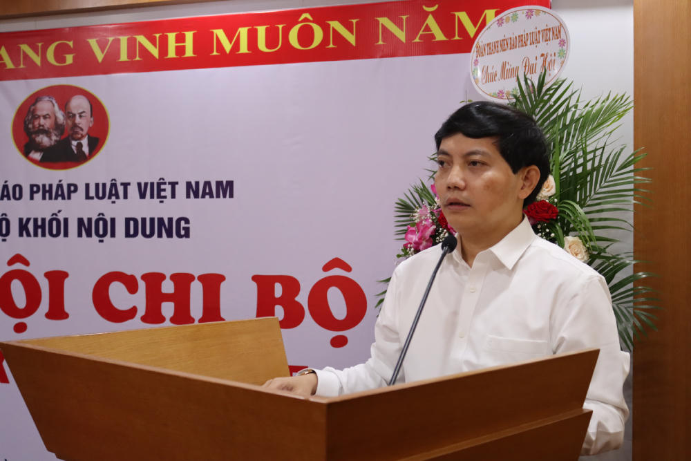 TS. Đào Văn Hội, Tổng Biên tập báo Pháp luật Việt Nam phát biểu tại Đại hội 2 Chi bộ. |