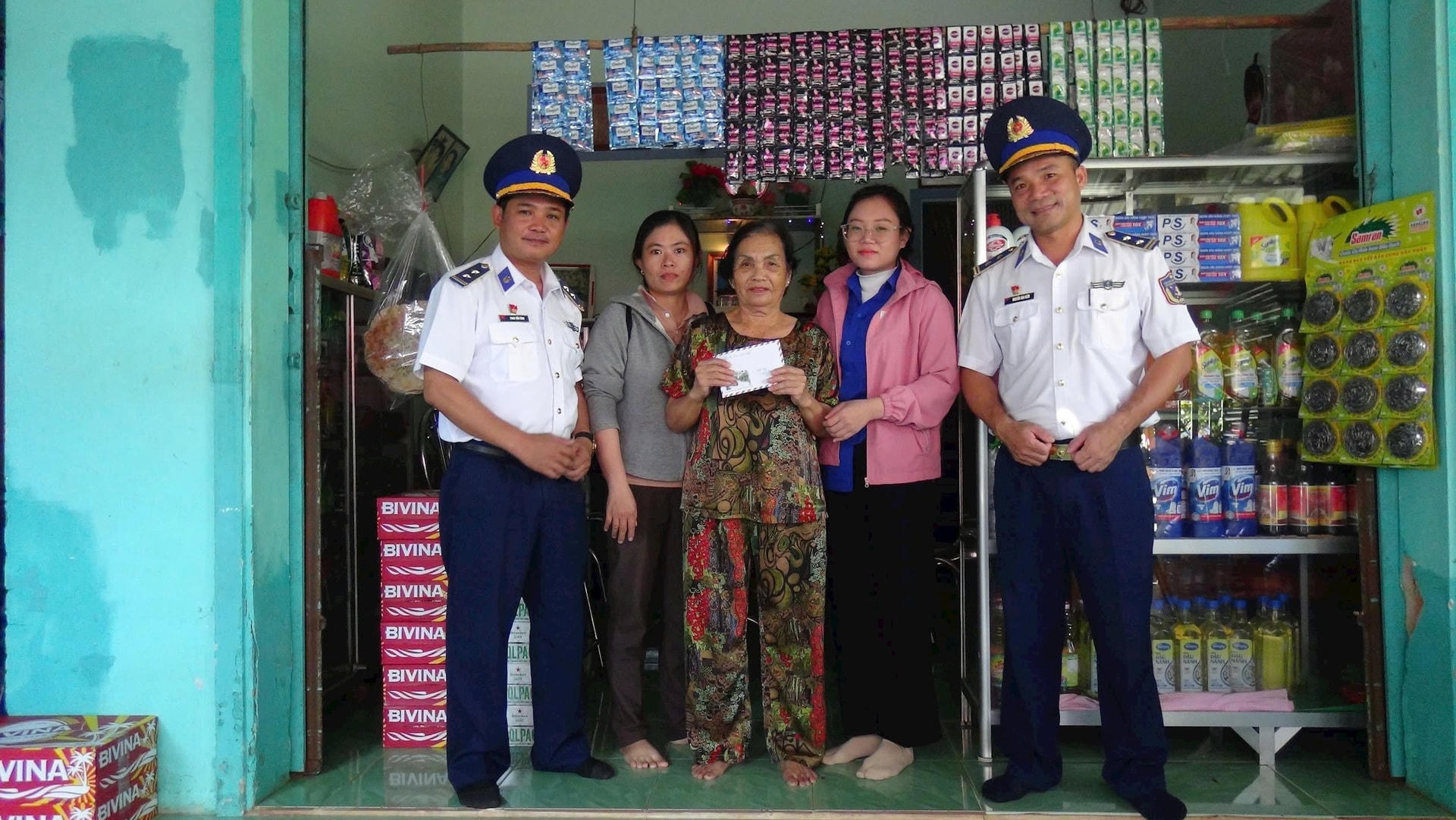 Cán bộ Hải đoàn 42 thăm, tặng quà gia đình chính sách. |