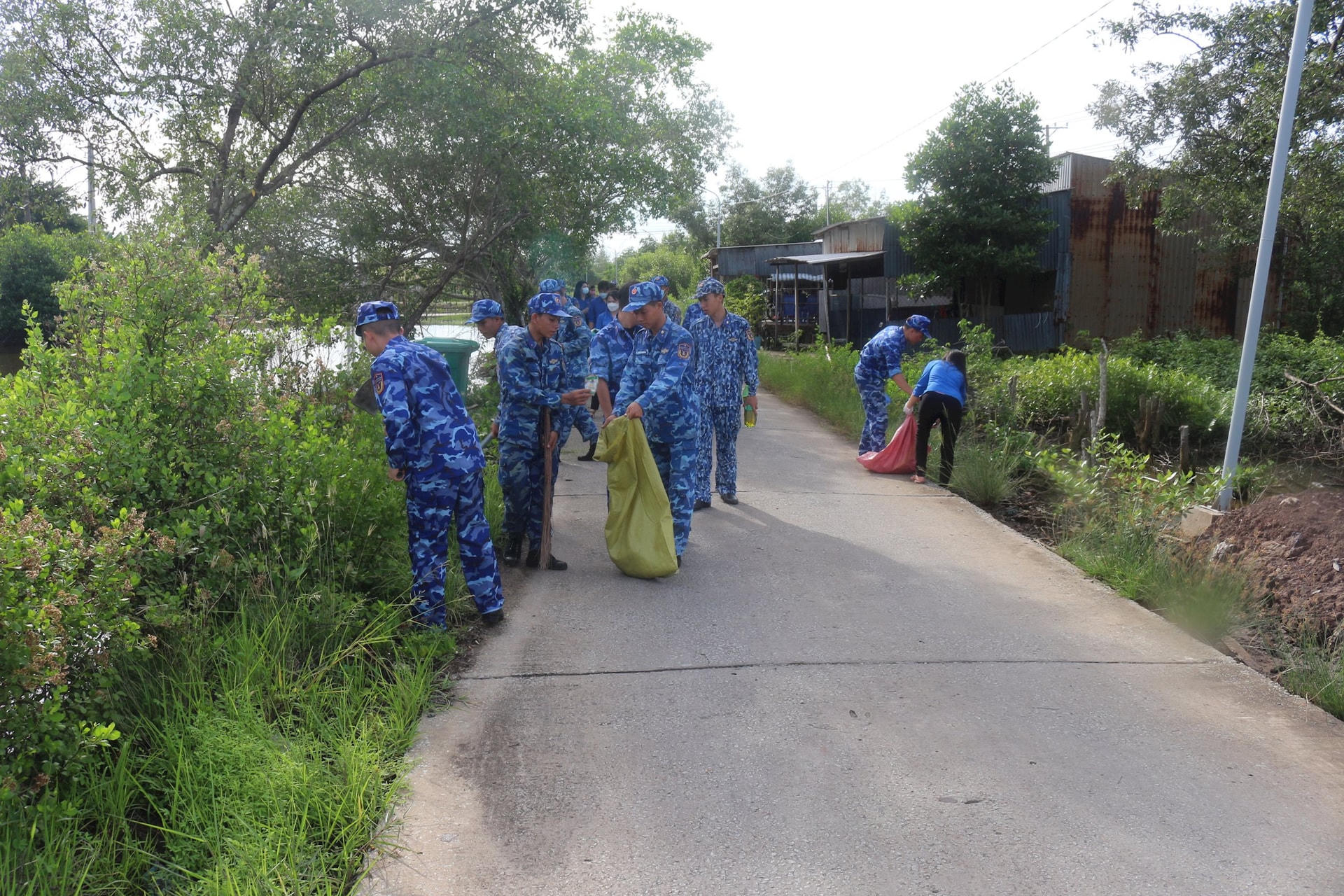 Cán bộ, chiến sĩ phối hợp với địa phương thực hiện "Ngày Chủ nhật xanh". |