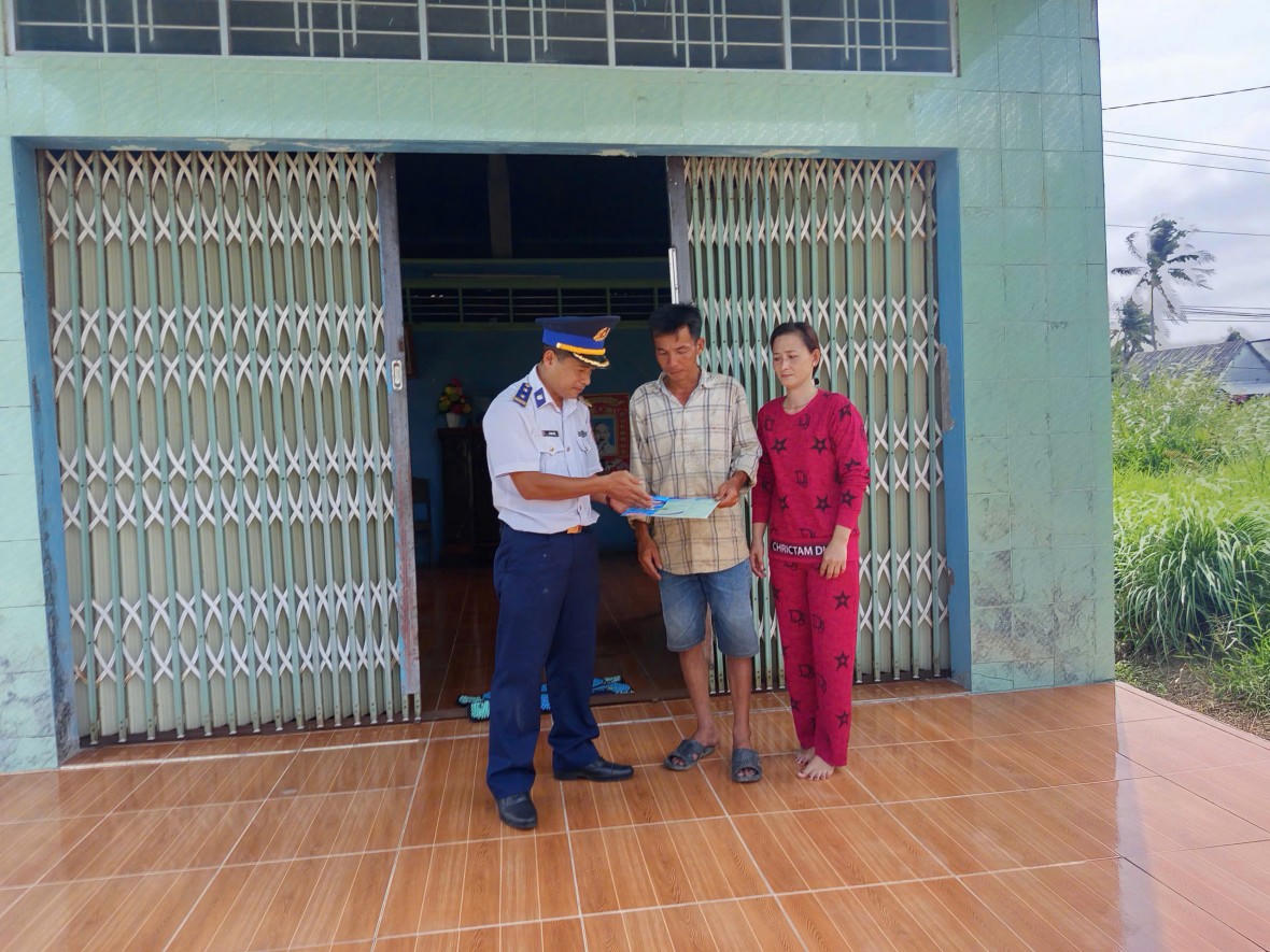 Đoàn công tác Hải đoàn 42 đã thực hiện tuyên truyền theo phương châm “Gõ cửa từng nhà, đến từng cảng cá”. (Ảnh trong bài: Khánh Thùy) |