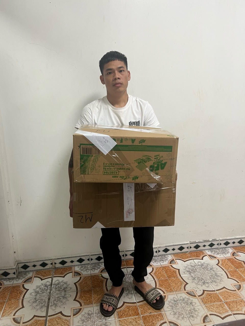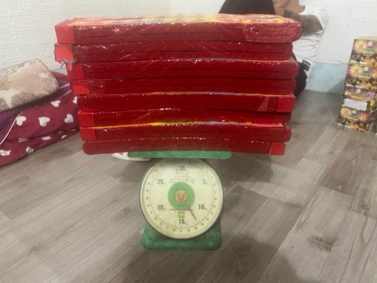 Tang vật thu giữ tại hiện trường gồm: 01 thùng Cacton bên trong chứa 22 hộp pháo nổ các loại, trên hộp có ghi chữ nước ngoài, tổng khối lượng 25,939 kg; 51 viên nén màu trắng (ma túy kẹo), khối lượng 19,086 gram và 20 túi ni lông chứa tinh thể màu trắng (ma túy ke), khối lượng 12,474 gram.