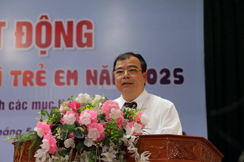 | Ông Nguyễn Minh Hùng, Phó Chủ tịch UBND tỉnh, Trưởng Ban chỉ đạo Dân số và Trẻ em tỉnh phát biểu phát động Tháng hành động vì trẻ em |