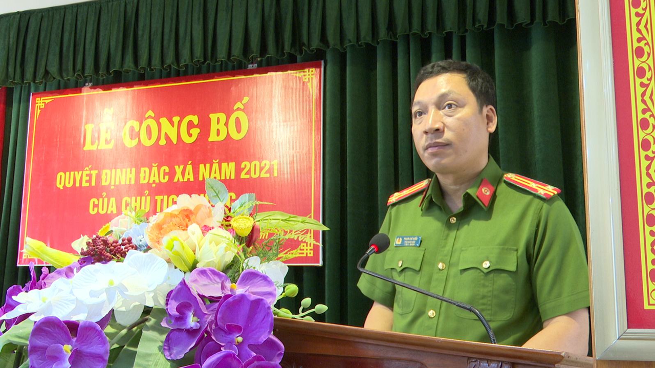 (PLVN) - Sáng1/9, Công an tỉnh Hải Dương tổ chức Lễ công bố Quyết định đặc xá năm 2021 của Chủ tịch nước. Thượng tá Phạm Chí Hiếu, Phó Giám đốc Công an tỉnh dự Hải Dương đã dự và phát biểu chỉ đạo tại buổi lễ.