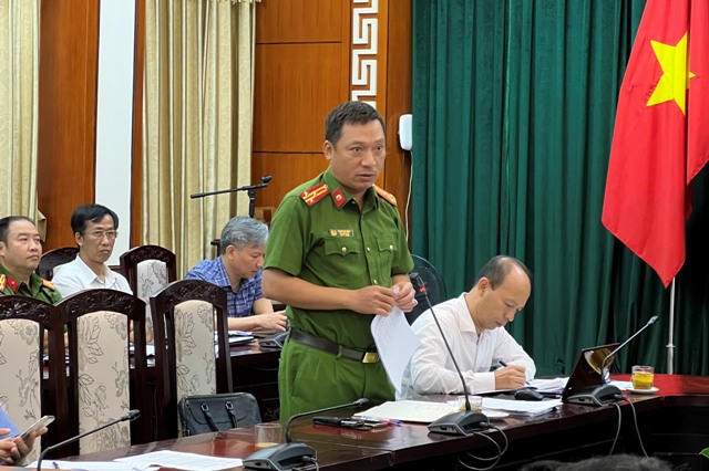 | Thượng tá Phạm chí Hiếu - Phó Giám đốc Công an tỉnh Hải Dương phát biểu tại hội nghị |