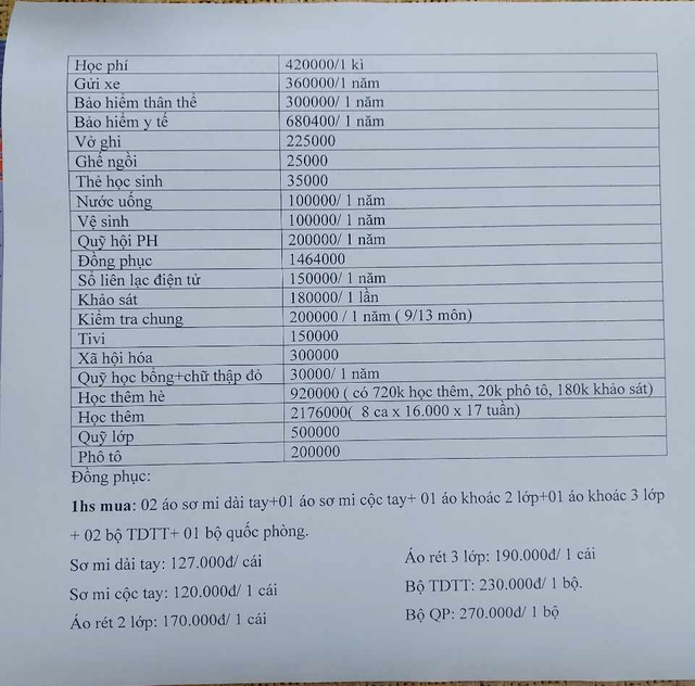 Trước đó sáng 10/9, một tài khoản trên mạng xã hội đã đăng danh sách 21 khoản thu được cho là của Trường THPT Thanh Miện III (xã Ngũ Hùng, huyện Thanh Miện, tỉnh Hải Dương). Cụ thể, hình ảnh bảng kê thu tiền đóng góp đầu năm học 2023-2024 số tiền hơn 8,7 triệu đồng/học sinh, chủ yếu thu cả năm. Một số khoản thu như đồng phục 1.464.000 đồng; học thêm hè 920.000 đồng; học thêm 2.176.000 đồng; quỹ lớp 500.000 đồng; phô tô 200.000 đồng; gửi xe 360.000 đồng/năm; tổng tiền khảo sát, kiểm tra chung và sổ liên lạc điện tử 530.000 đồng; riêng tiền ti vi và xã hội hóa 450.000 đồng…. Sự việc đã thu hút nhiều người quan tâm, bình luận.