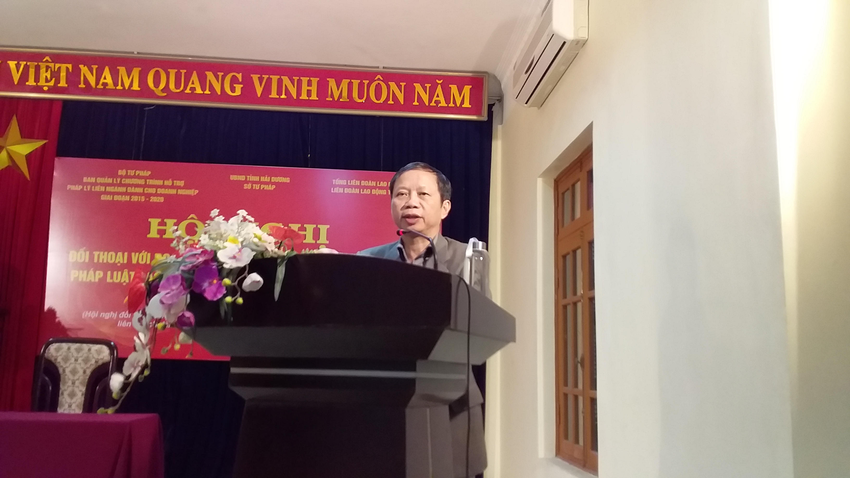 (PLVN) - Được sự hỗ trợ của Chương trình hỗ trợ pháp lý liên ngành dành cho doanh nghiệp giai đoạn 2015-2020 (Bộ Tư pháp), sáng 30/10, Sở Tư pháp đã phối hợp với Liên đoàn lao động tỉnh Hải Dương tổ chức Hội nghị đối thoại với doanh nghiệp về các vấn đề liên quan đến pháp luật lao động và chế độ, chính sách đối với người lao động.