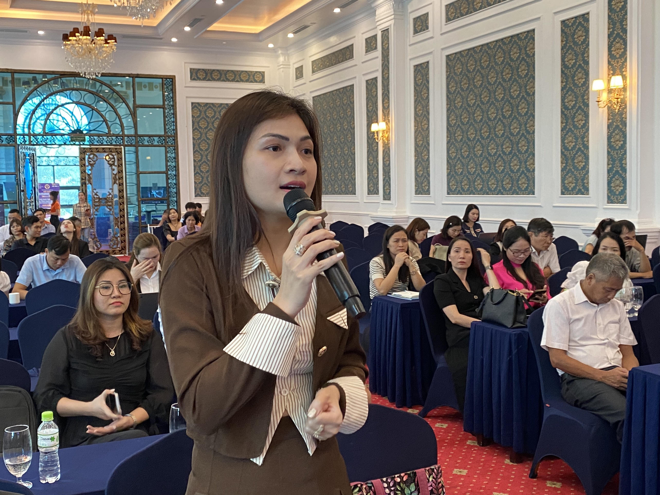 Hoa hậu Doanh nhân Việt Nam 2022 Mạc Thị Minh đặt câu hỏi tại Hội thảo |