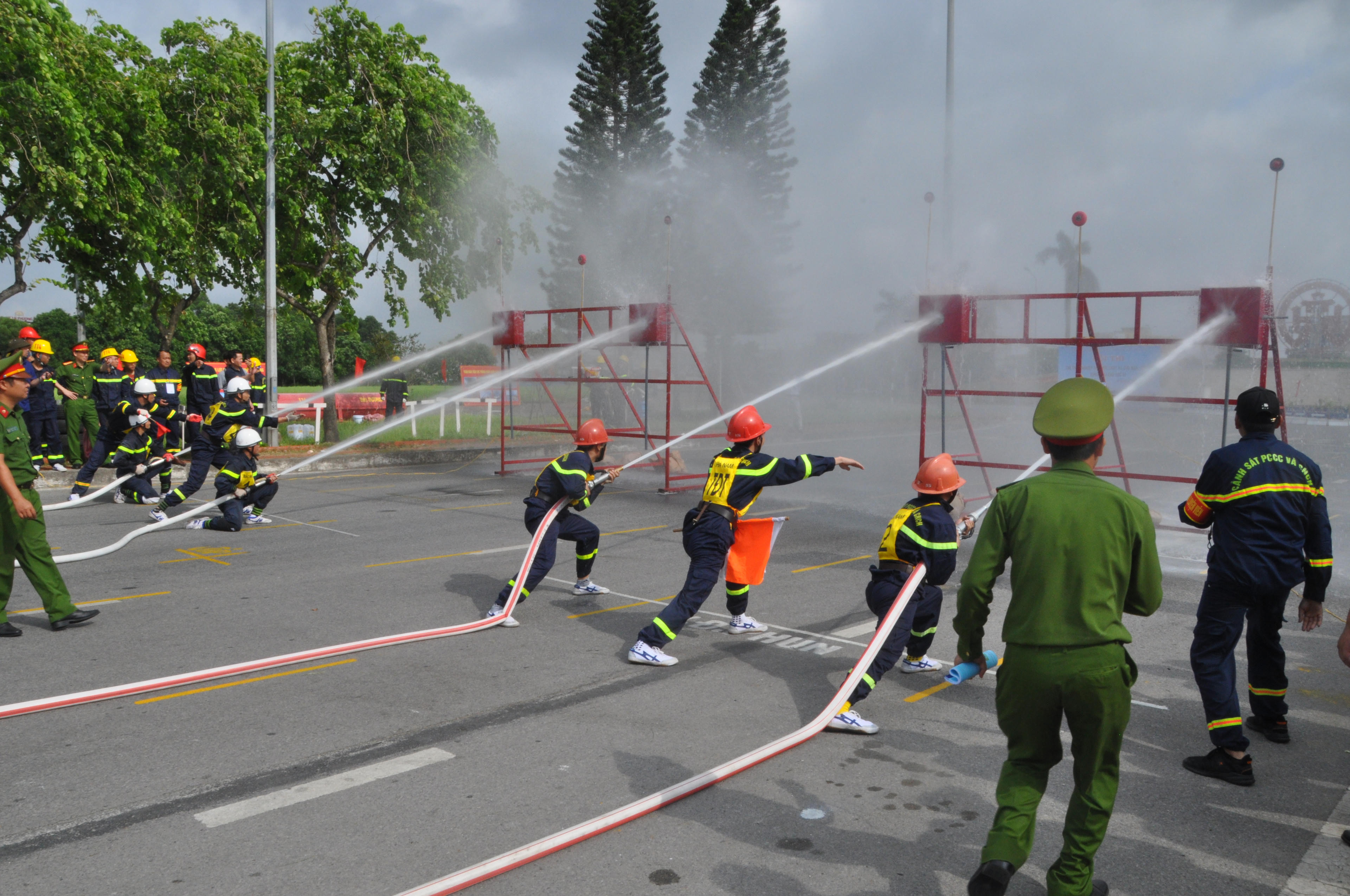 Các nội dung thi đấu bao gồm: Chạy 100m vượt chướng ngại vật; Chạy tiếp sức 4x100m cứu người và chữa cháy; Đội hình máy bơm phun nước tiêu điểm, mỗi nội dung lần lượt có 02 đội tuyển cùng thi đấu, tất cả các nội dung thi đấu diễn ra vô cùng sôi động hấp dẫn và đầy kịch tính xong vẫn đảm bảo đúng yêu cầu, thể lệ của Ban tổ chức, đặc biệt không xảy ra những chấn thương đáng tiếc cho các vận động viên.