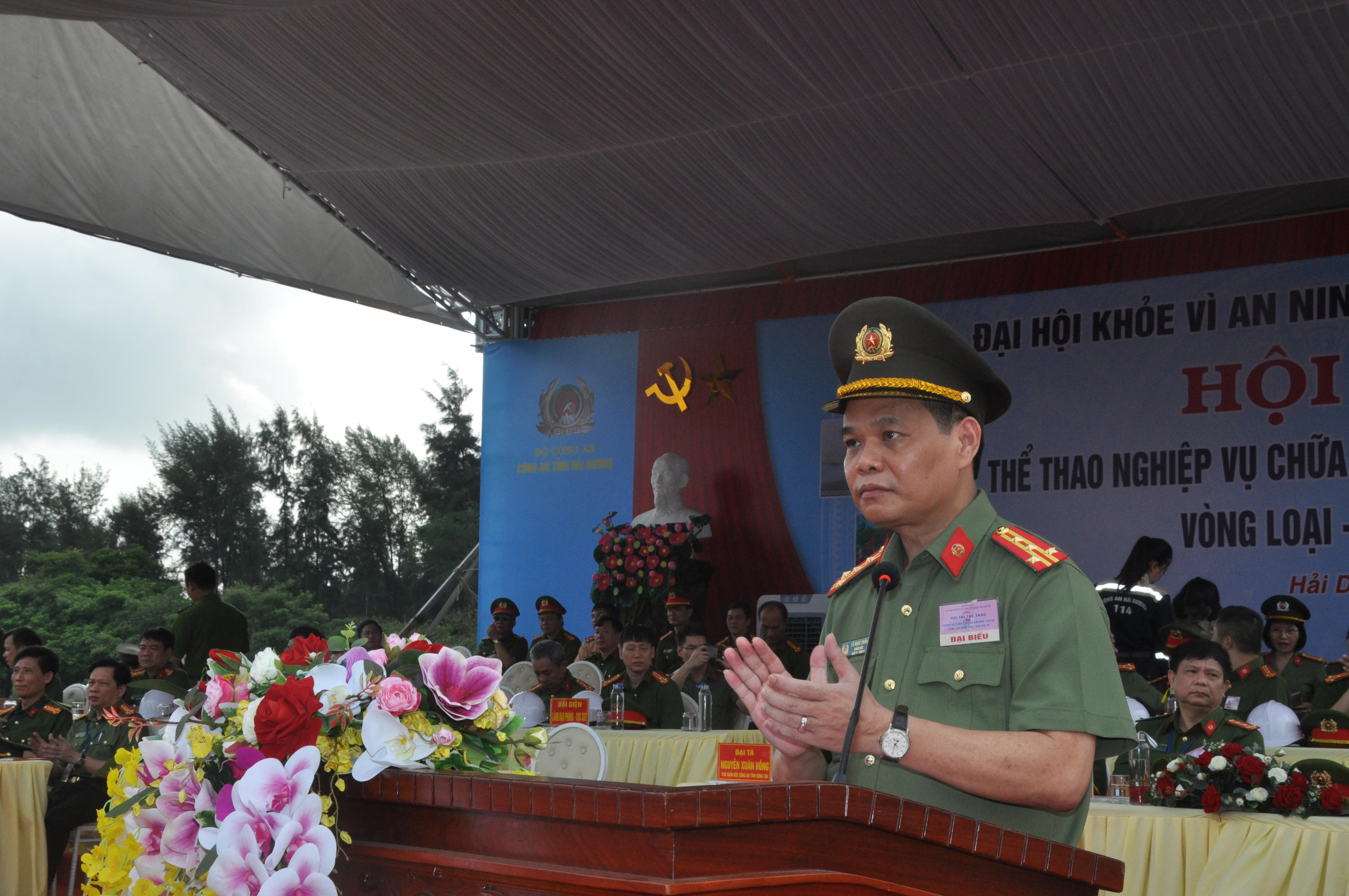 Thay mặt Công an tỉnh Hải Dương, Đại tá Lê Ngọc Châu, Giám đốc Công an tỉnh Hải Dương bày tỏ sự cảm ơn tới Cục Cảnh PCCC và CNCH - Bộ Công an đã quan tâm, phối hợp chặt chẽ với đơn vị chủ nhà trong việc tổ chức hội thi; Cảm ơn lãnh đạo UBND tỉnh, các sở, ban, ngành, Công an các đơn vị địa phương trong và ngoài tỉnh đã đến động viên, cổ vụ cho hội thi.