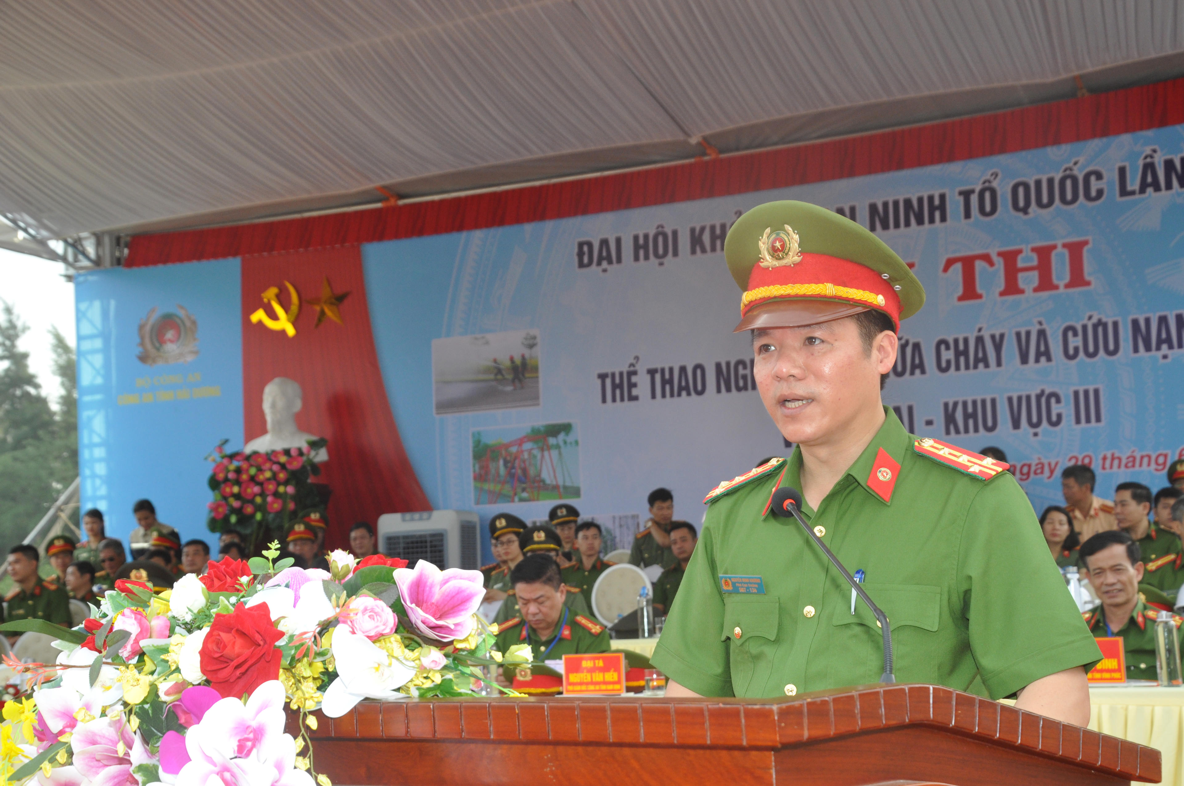 Phát biểu tại hội thi, Đại tá Nguyễn Duy Khương, Phó Cục trưởng Cục Cảnh sát PCCC và CNCH - Bộ Công an đã ghi nhận và đánh giá cao tất cả các khâu tổ chức hội thi, đặc biệt là sự quan tâm của UBND tỉnh Hải Dương, Ban Giám đốc Công an tỉnh Hải Dương, các đơn vi chức năng của Công an tỉnh Hải Dương đã quan tâm, giúp đỡ tạo điều kiện thuận lợi để Ban tổ chức hội thi hoàn thành tốt nhiệm vụ theo đúng kế hoạch.