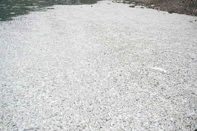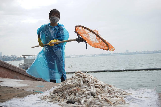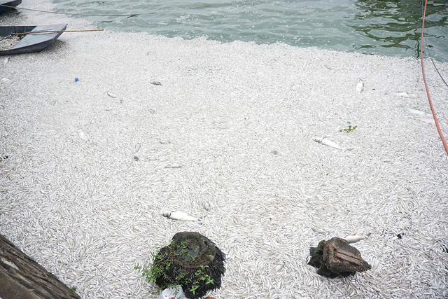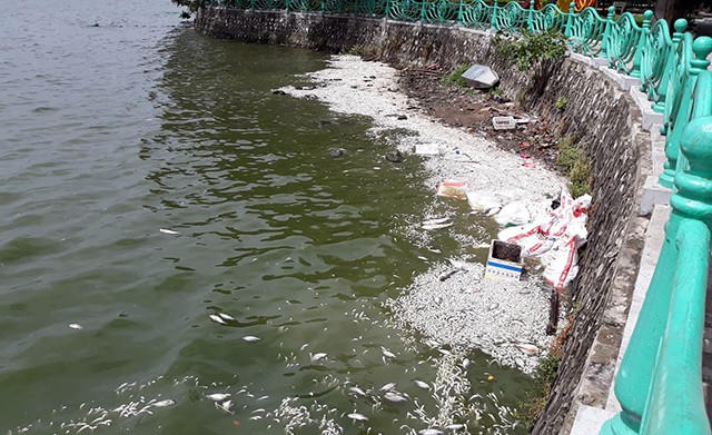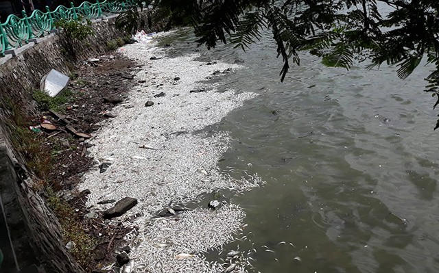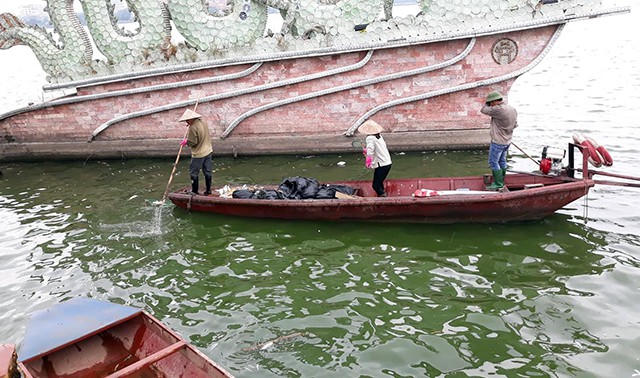 Hồi tháng 10/2016, có hiện tượng hàng trăm tấn cá chết ở Hồ Tây. Lực lượng chức năng mất cả tuần mới xử lý xong. (Ảnh: Phạm Công)