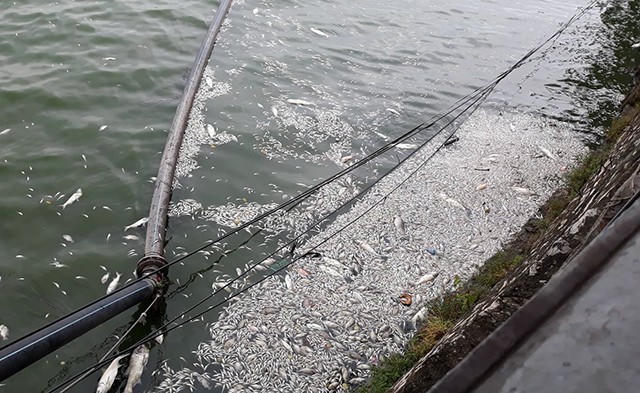 Hãi hùng cảnh cá chết trắng góc Hồ Tây