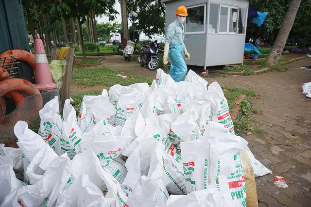 Sáng nay (9/7), tại khu vực ven đường Trích Sài (Hồ Tây, Hà Nội), số lượng cá chết tiếp tục tăng thêm, nổi trắng một góc hồ. Nhiều công nhân môi trường và tình nguyện viên "mỏi tay" vớt cá mang đi tiêu huỷ.