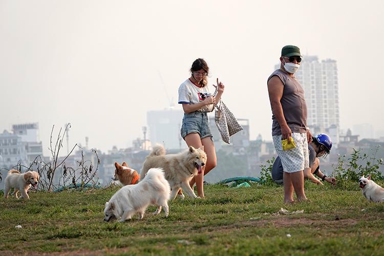 Không được xích, không đeo rọ mõm, chó dữ vô tư chạy trong công viên, nơi công cộng ở Hà Nội khiến ai cũng lo sợ.
