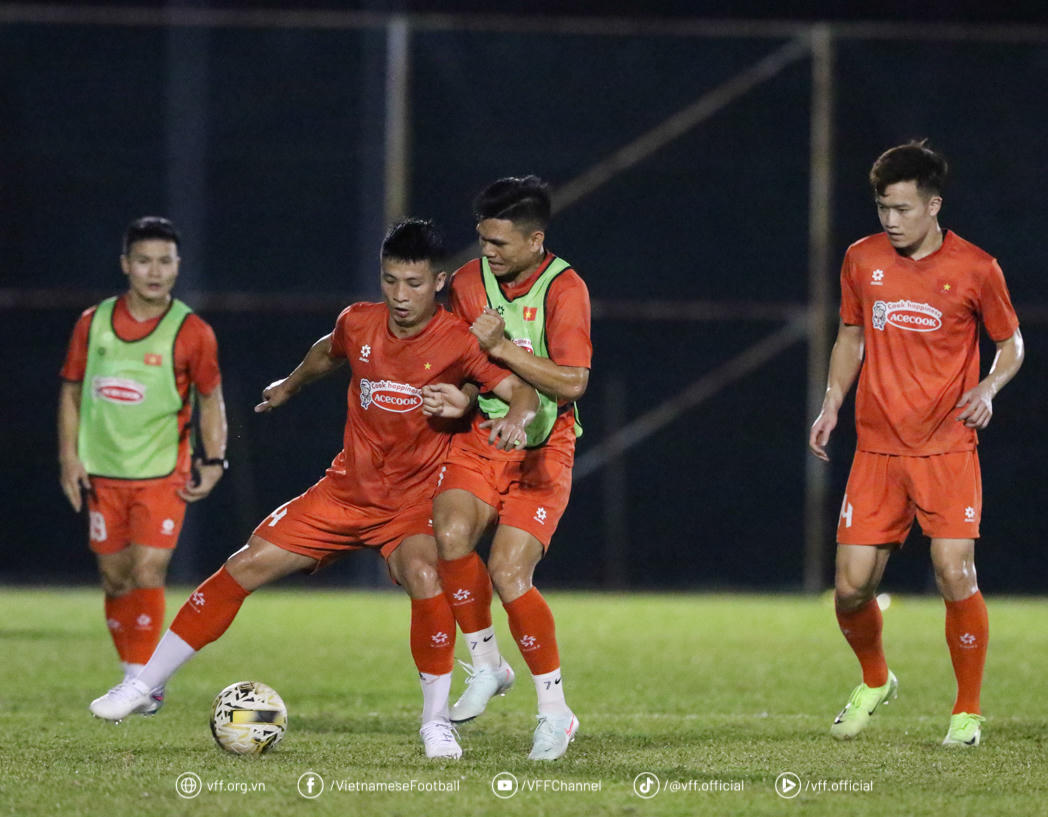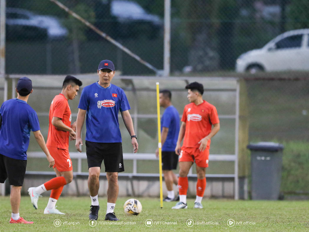 Quan sát buổi tập đầu tiên trên đất khách, HLV Kim Sang Sik chủ yếu chú trọng các bài tập chiến thuật, rèn luyện sự gắn kết và tổ chức lối chơi.