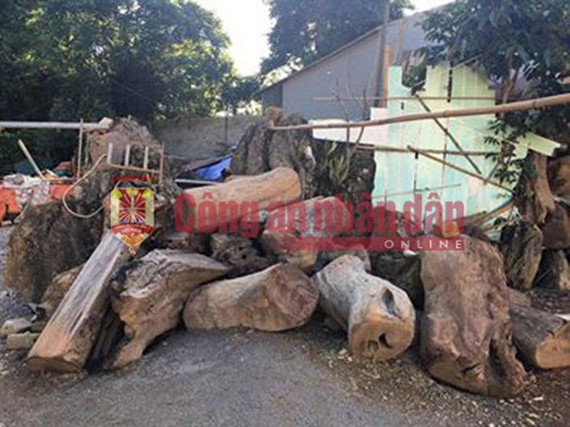 | Trong khuôn viên ngôi nhà đối tượng bố trí nhiều khúc gỗ nhằm xây dựng "bong ke" lô cốt chống trả khi cần thiết |