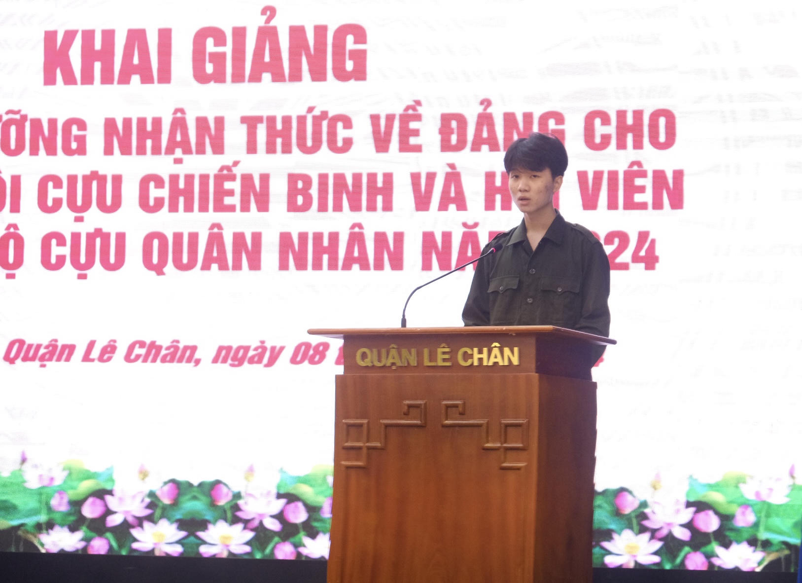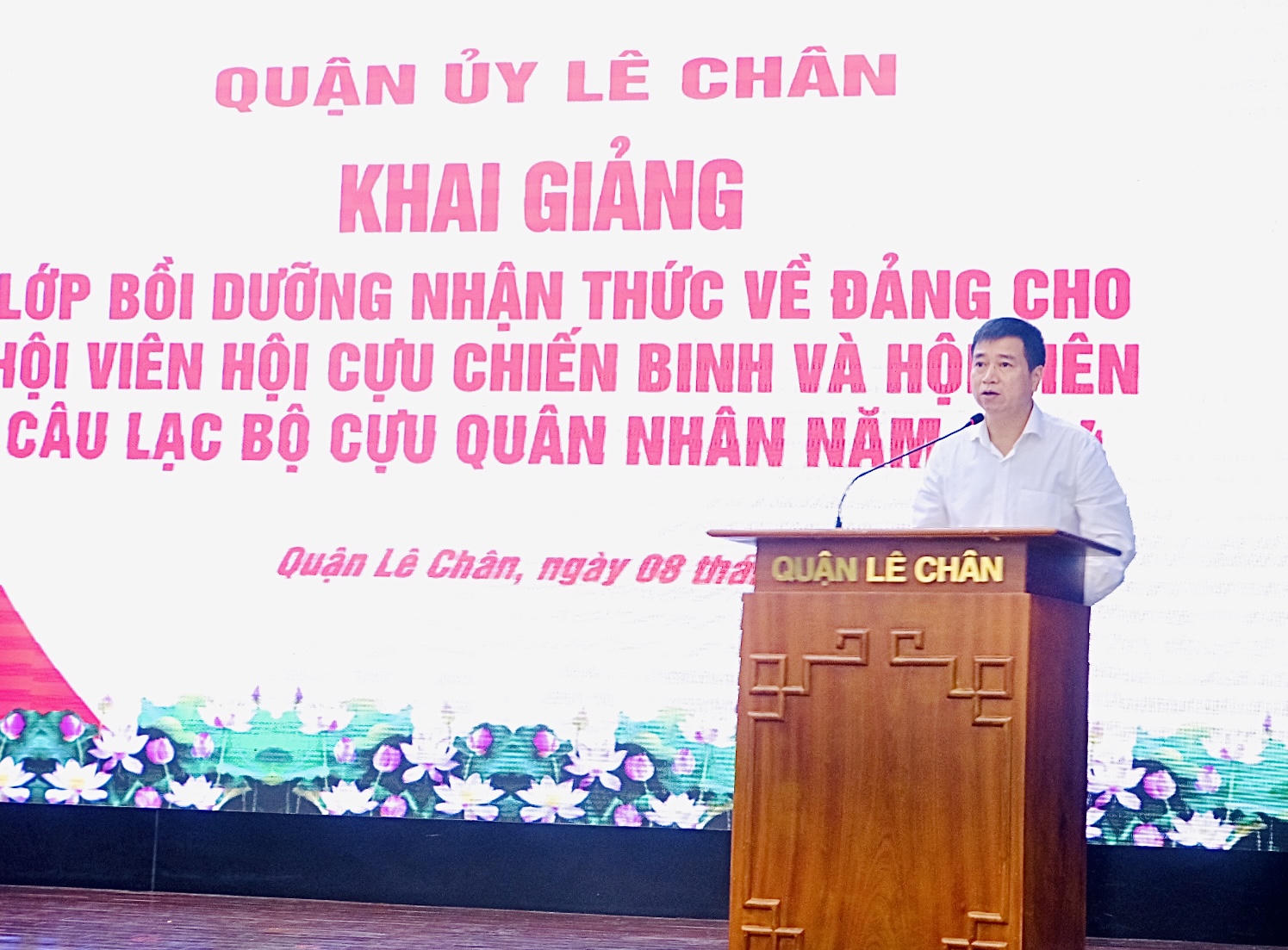 Trưởng Ban Tổ chức Quận ủy Lê Chân Lâm Văn Đạt cho biết, Thực hiện Kế hoạch số 212 ngày 25/7/2024 của Ban Thường vụ Quận ủy Lê Chân, Ban Tổ chức Quận ủy phối hợp Trung tâm Chính trị quận, Ban Chỉ huy Quân sự quận, Hội Cựu chiến binh quận và Đảng ủy 15 phường rà soát các quần chúng là Hội viên Hội Cựu Chiến binh và Hội viên Câu lạc bộ Cựu Quân nhân trong độ tuổi kết nạp, có nguyện vọng được đứng trong hàng ngũ của Đảng. Qua rà soát có 59 quần chúng ưu tú được Đảng ủy 15 phường giới thiệu đăng ký tham gia lớp Bồi dưỡng nhận thức về Đảng. Đây cũng là lớp Bồi dưỡng nhận thức về Đảng cho học viên là Hội viên Hội Cựu Chiến binh và Hội viên Câu lạc bộ Cựu Quân nhân đầu tiên của Hải Phòng.