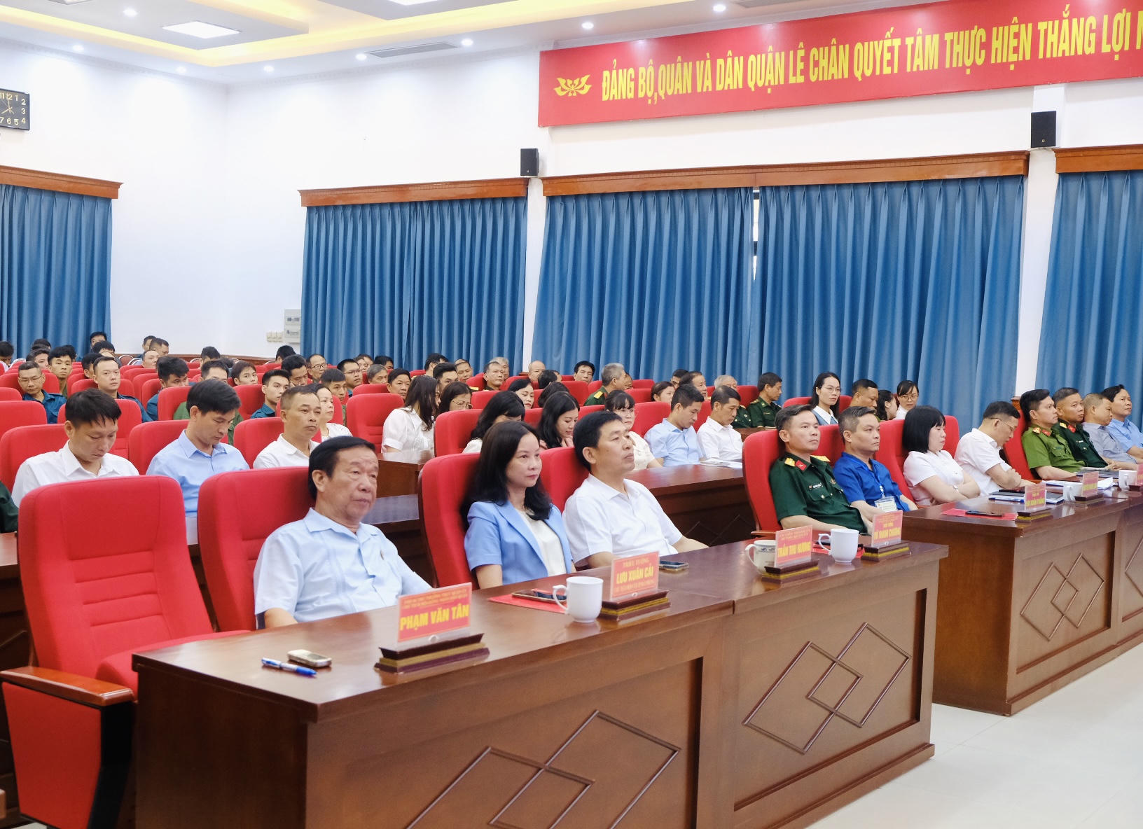 Về phía quận Lê Chân có: Bí thư Quận uỷ Trần Thu Hương; Chủ tịch HĐND quận Phạm Văn Tân; Chủ tịch UBND quận Nguyễn Hoàng Linh cùng lãnh đạo Ban Tổ chức Quận uỷ, lãnh đạo Hội Cựu Chiến binh quận.