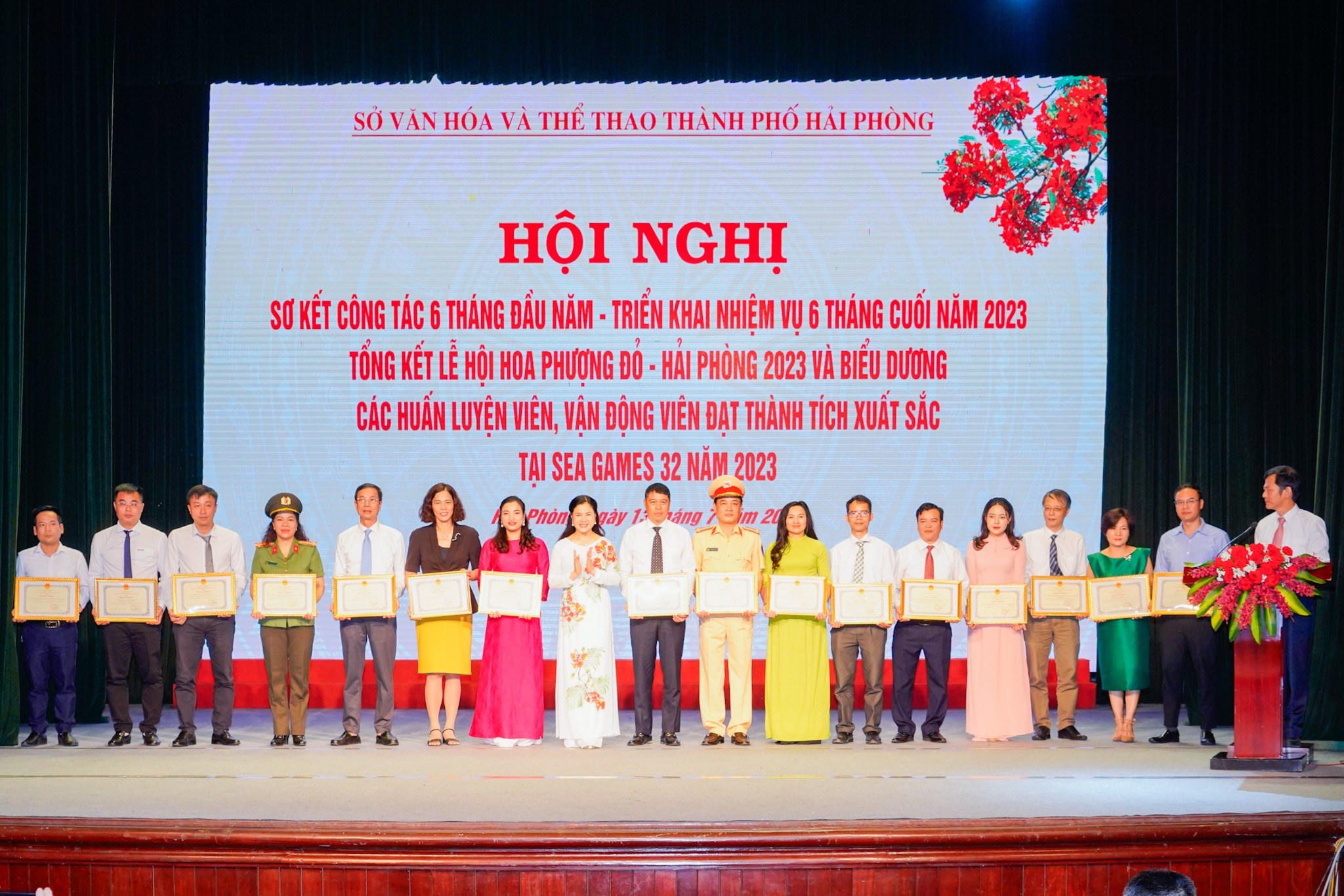(PLVN) - Sáng 13/7, Sở Văn hóa và Thể thao TP Hải Phòng tổ chức Hội nghị sơ kết công tác 6 tháng đầu năm - Triển khai nhiệm vụ công tác 6 tháng cuối năm 2023; Tổng kết Lễ hội Hoa Phượng Đỏ - Hải Phòng 2023 và Tuyên dương các huấn luyện viên, vận động viên có thành tích xuất sắc tại Sea Games 32 năm 2023.
