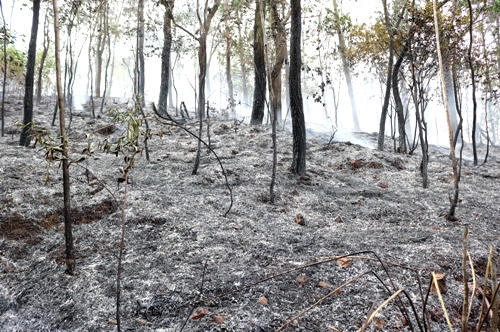 Khoảng 15 phút sau, ngọn lửa được khống chế, tuy nhiên 3 ha rừng đã bị thiêu cháy.