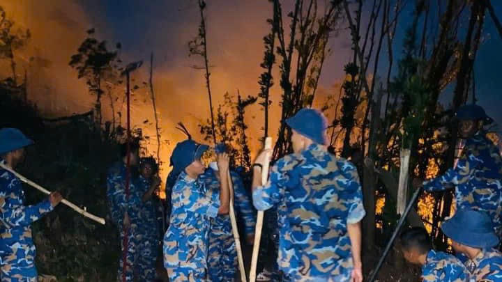 | Gần 300 người đã được huy động, kèm theo nhiều xe chữa cháy và phương tiện cần thiết để nhanh chóng tiếp cận hiện trường và tổ chức chữa cháy |