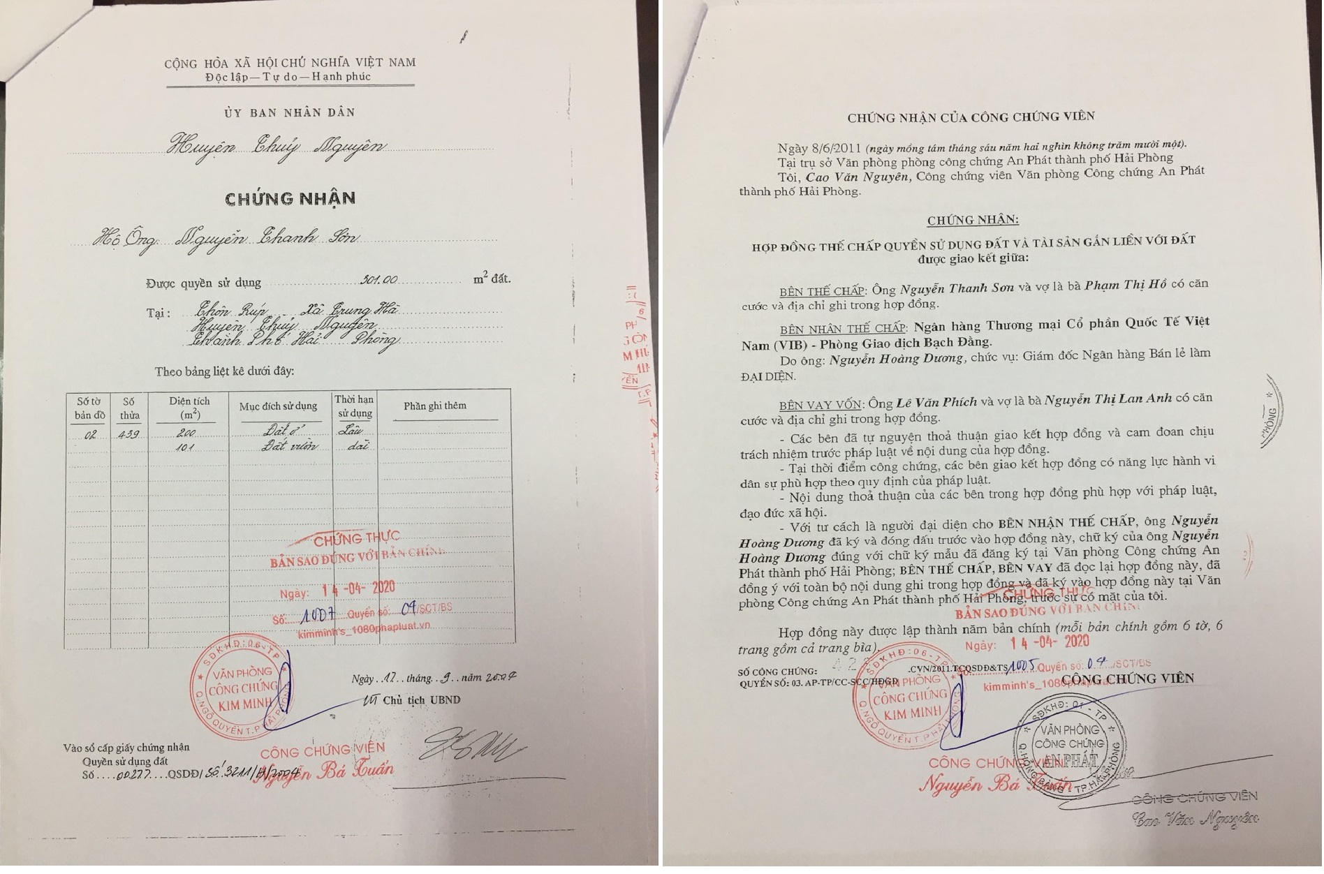 Luật sư Hà chỉ ra rằng, thứ nhất, vợ chồng ông Phích và những người bảo lãnh được Ngân hàng VIB hẹn ký hợp đồng thế chấp vào khoảng 19h00 đến 20h00 tại Phòng giao dịch VIB Thủy Nguyên (TP Hải Phòng). Tuy nhiên, khi ký không có mặt công chứng viên, phía ông Phích cũng không được giao bản gốc hợp đồng sau khi ký. Những hợp đồng thế chấp hiện gia đình đang có là do được tòa án cho phép sao chụp lại khi khởi kiện ngân hàng VIB.
