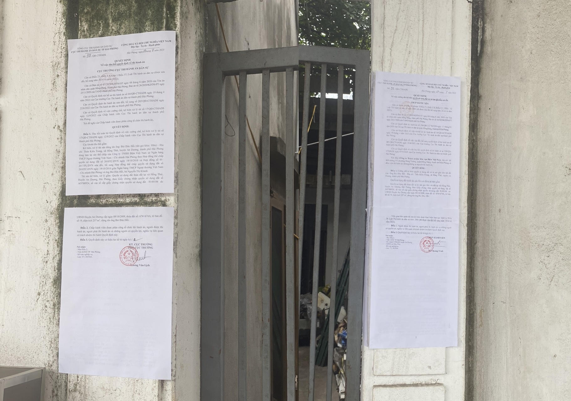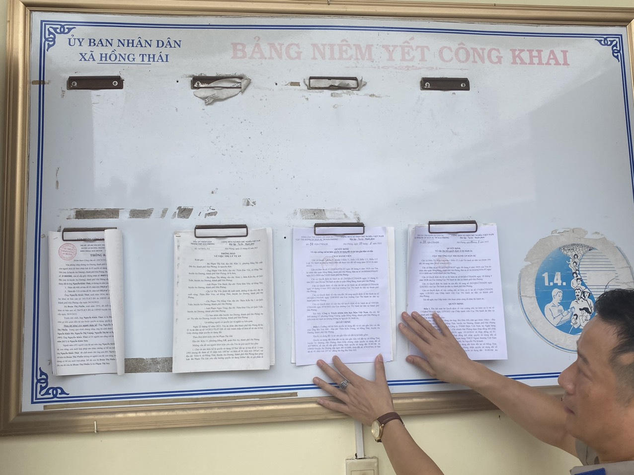 Quyết định cưỡng chế được niêm yết tại UBND xã Hồng Thái, huyện An Dương. |