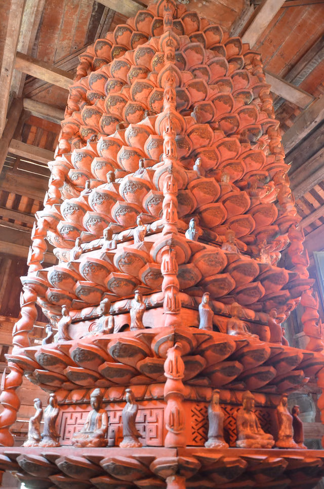 Để tạo dựng kiệt tác này, các nghệ nhân xưa đã đặt tâm của cây Cửu phẩm là cột trụ chất liệu gỗ lim lên trên cối quay, cối quay này có chất liệu kim loại có chiều cao khoảng 40cm. Phía dưới cùng của cối quay có lắp hệ thống vòng bi.