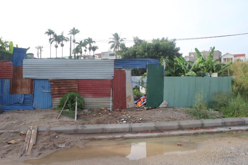 Tiếp đến, phải kể đến khu đất mặt tuyến đường World Bank thuộc dự án tái định cư Đằng Lâm 2 do Công ty CP xây lắp thương mại (ICC) làm chủ đầu tư. Vị trí này được quy hoạch để trồng cây xanh. Tuy nhiên do Công ty ICC chưa thực hiện việc trồng cây xanh nên các đối tượng xấu đã quây tôn phía ngoài, phía trong lén lút xây dựng công trình.