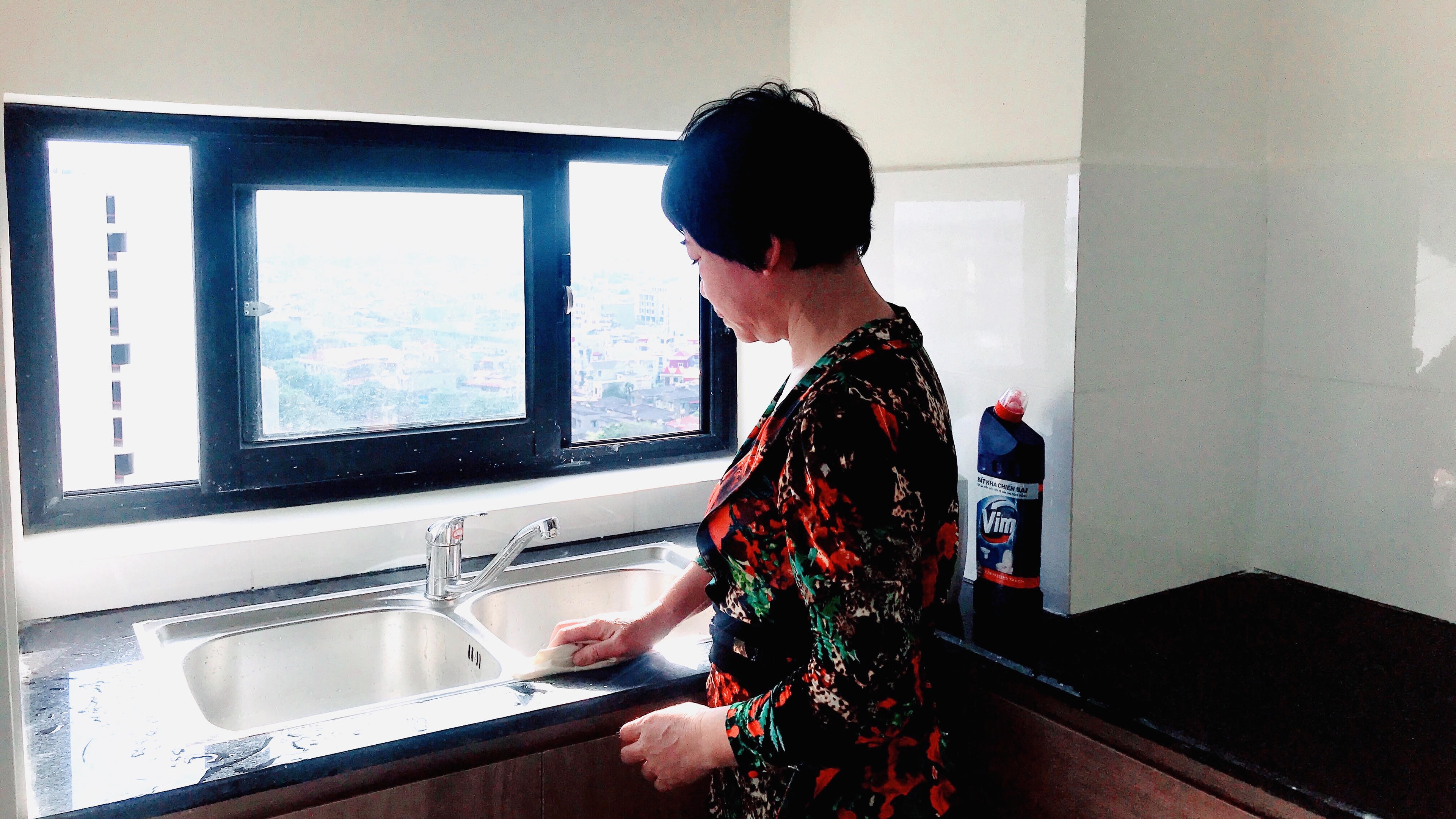 Gia đình bà Lê Thị Thúy (61 tuổi, ở căn hộ số 1620, tầng 16) là một trong những hộ đầu tiên vận chuyển đồ đạc từ nơi tạm cư về căn hộ mới. Trong niềm phấn khởi, hân hoan, bà Thuý chia sẻ: “Hơn 22 năm sống ở khu tập thể Đ7 cũ vỏn vẹn 26 m2 chật chôi, xuống cấp thì nay gia đình tôi được về ở trong tòa nhà khang trang, văn minh và hiện đại hơn rất nhiều. Căn hộ mới của gia đình có diện tích gần 49,5 m2, được lắp đầy đủ trang thiết bị tiện nghi như điều hoà, bình nóng lạnh, bồn rửa bát,… Nguyện vọng có một căn nhà khang trang, đẹp đẽ giờ đã thành hiện thực. Trong quá trình hoàn tất thủ tục nhận nhà mới, gia đình tôi luôn nhận được sự giúp đỡ tận tình của các cán bộ phường Đổng Quốc Bình cũng như lãnh đạo quận Ngô Quyền. Hơn nữa, nhu cầu cũng như quyền lợi của nhân dân luôn được lãnh đạo TP quan tâm sát sao nên cuộc sống chúng tôi được ổn định hơn rất nhiều”.