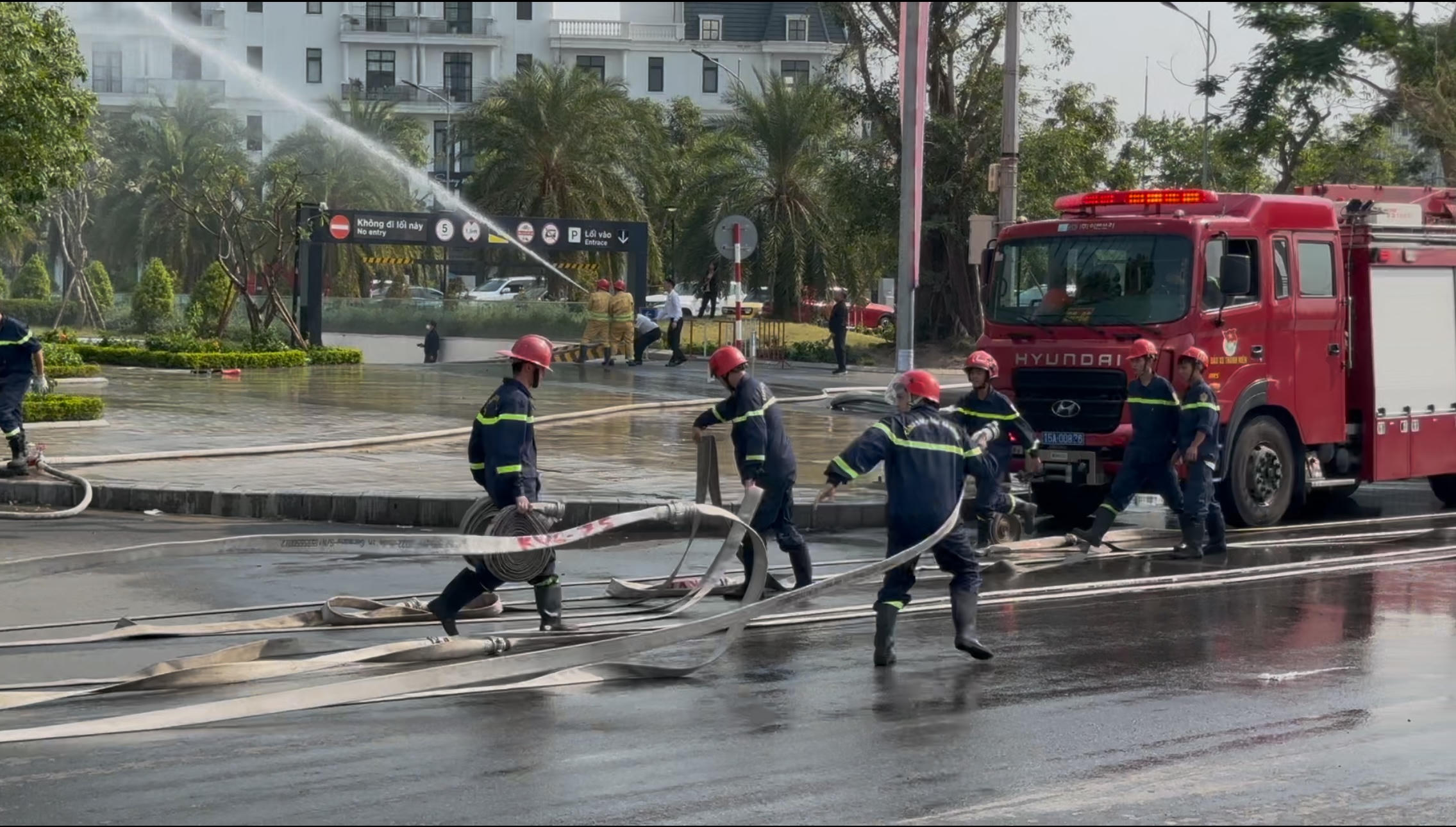 Theo đó, tình huống giả định trong cuộc diễn tập là vào lúc 9h sáng 12/11/2024, tại tầng hầm của Tổ hợp khách sạn Sheraton Hải Phòng, Trung tâm thương mại Vincom Plaza và rạp chiếu phim CGV, một đám cháy xảy ra do sự cố trong quá trình sạc xe ô tô điện, dẫn đến cháy, nổ tại khu vực để xe. Ngọn lửa nhanh chóng lan rộng, gây nổ các bình nhiên liệu, làm cháy lan trên khắp mặt sàn tầng hầm B1.