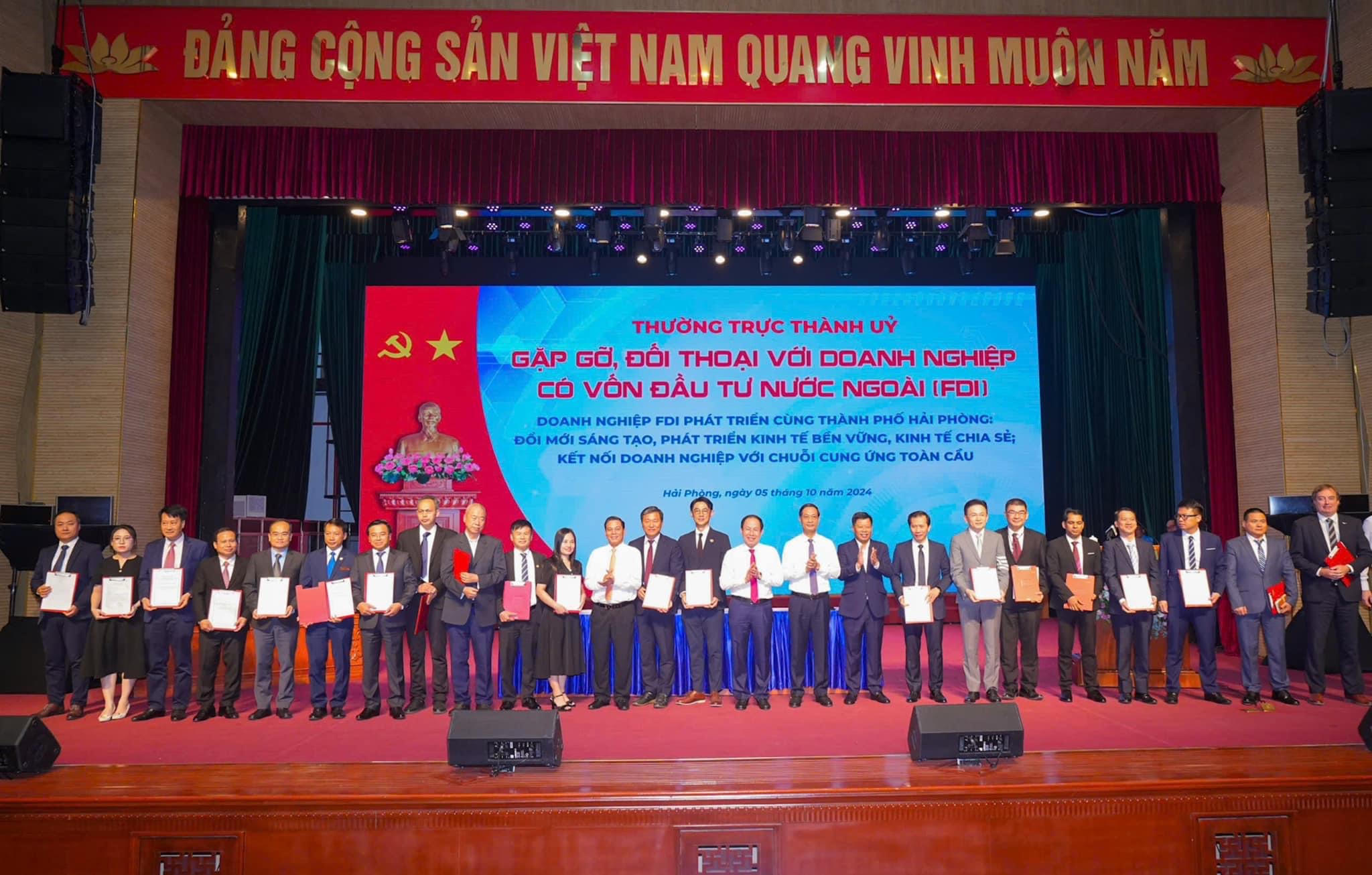 (PLVN) - Ngày 5/10, Thành uỷ Hải Phòng tổ chức Hội nghị gặp gỡ, đối thoại với doanh nghiệp FDI năm 2024. Tham dự Hội nghị có 350 doanh nghiệp FDI và 50 doanh nghiệp trong nước.
