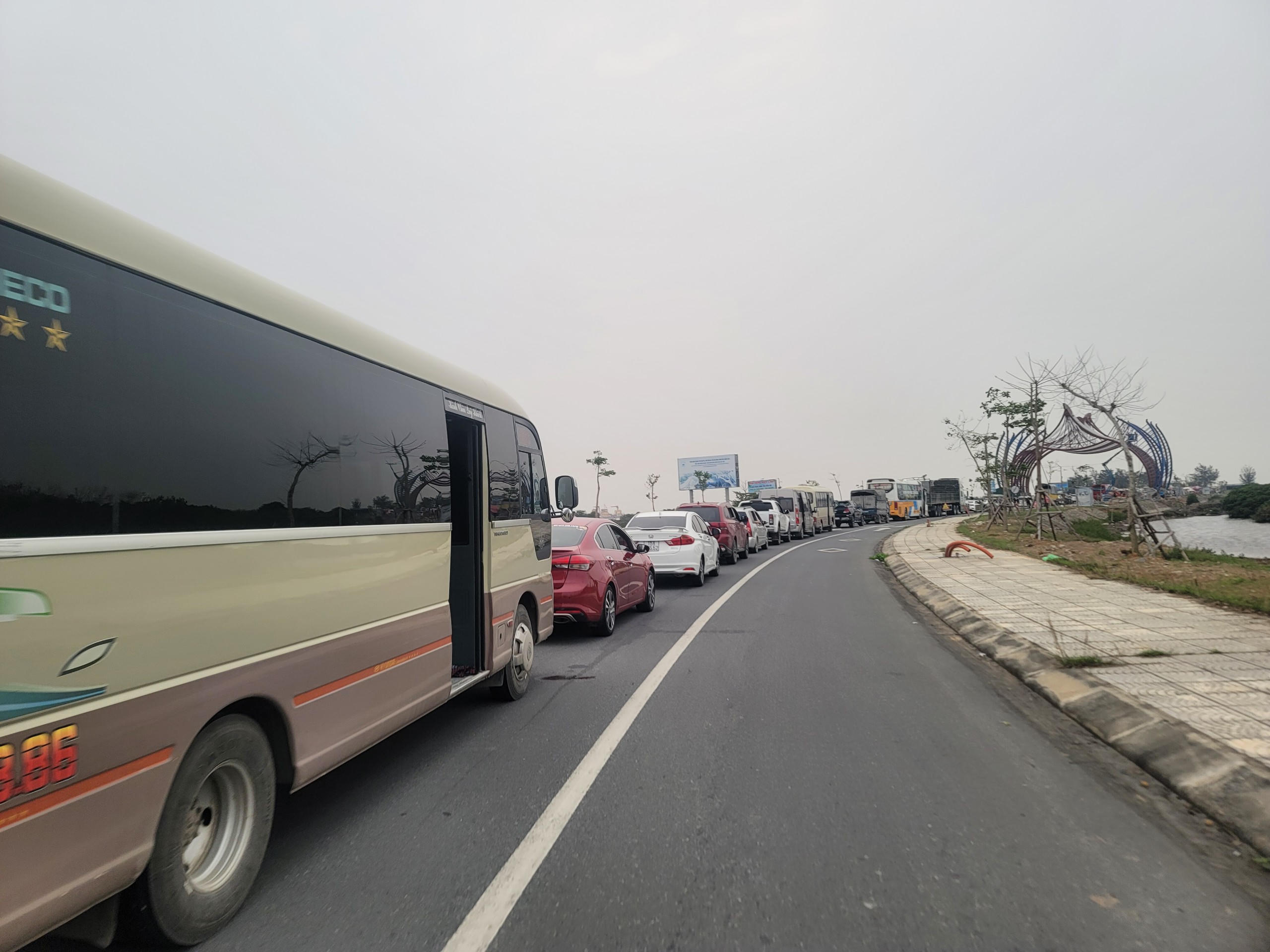 Hiện tượng ùn tắc tại tuyến đường dẫn vào bến phà Gót diễn ra thường xuyên vào dịp cao điểm. |