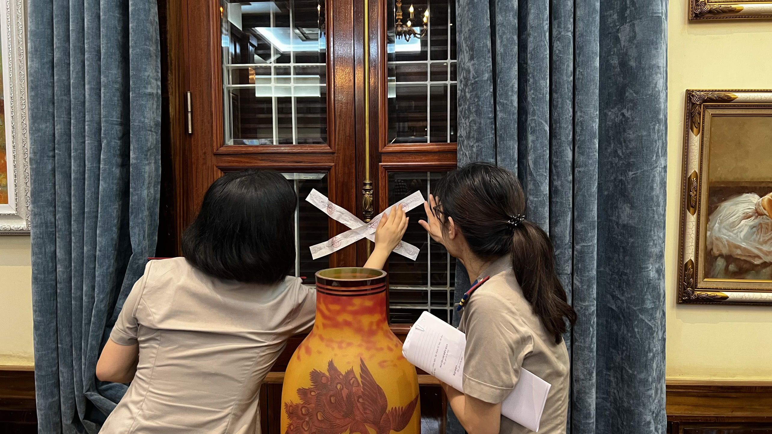 Niêm phong các khu vực ra vào của biệt thự. |