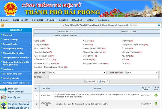 Đến nay có 131 dịch vụ công trực tuyến ở mức độ 3 và 36 dịch vụ công ở mức độ 4 được triển khai trên cổng thông tin điện tử TP. Các ngành thuế, hải quan đã triển khai có kết quả hệ thống CNTT chuyên ngành và liên thông dữ liệu, tạo điều kiện thuận lợi cho doanh nghiệp giao dịch trên môi trường mạng. Những kết quả đạt được nói trên đã góp phần quan trọng trong cải cách hành chính, nâng cao năng lực cạnh tranh cho TP, góp phần giữ vững vị trí thứ 2 của Hải Phòng trong bảng xếp hạng cải cách hành chính năm 2016.