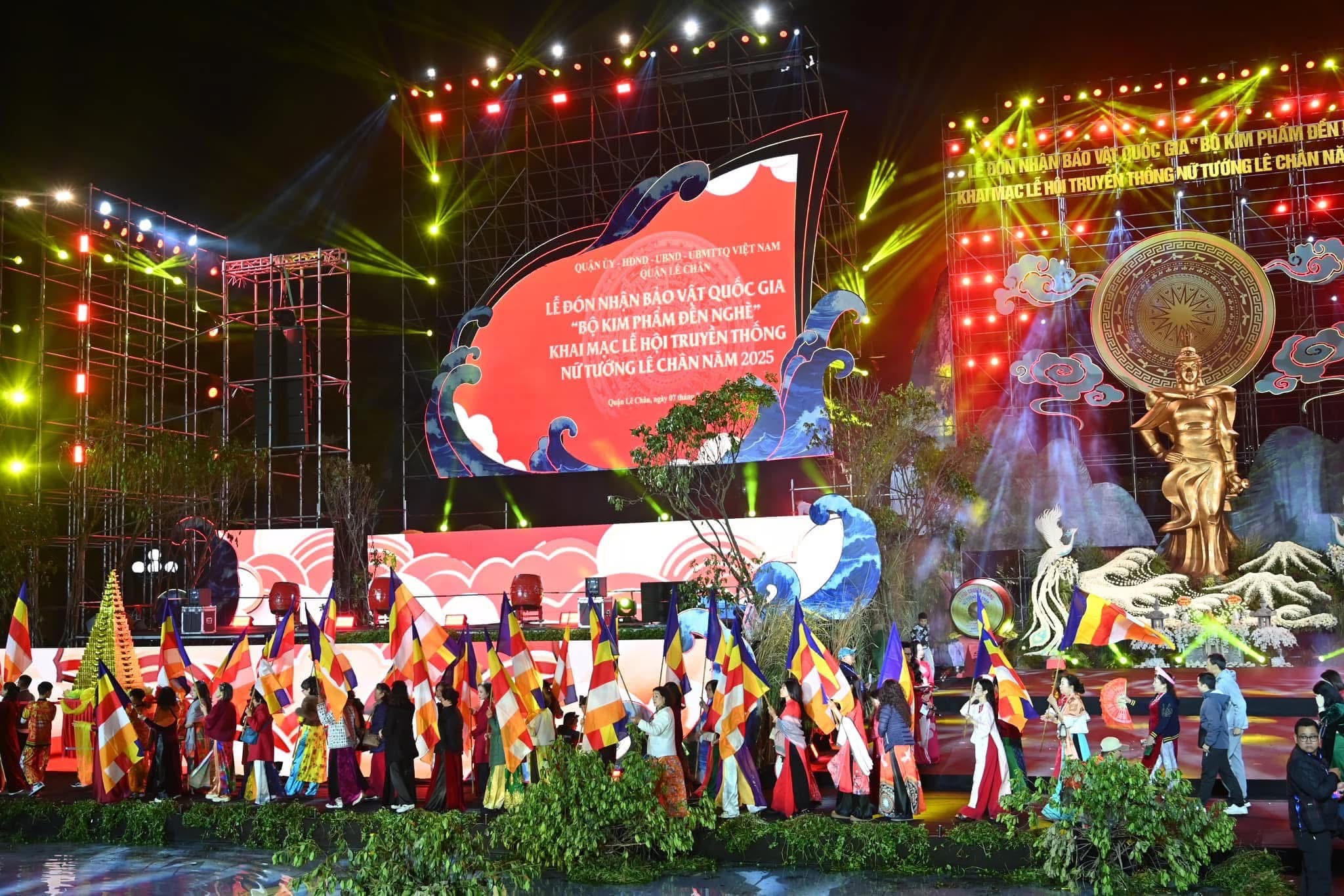 (PLVN) - Tối 7/3, tại Quảng trường Tượng đài Nữ tướng Lê Chân, TP Hải Phòng tổ chức Lễ đón nhận bảo vật quốc gia “Bộ kim phẩm đền Nghè” và khai mạc Lễ hội truyền thống Nữ tướng Lê Chân năm 2025.