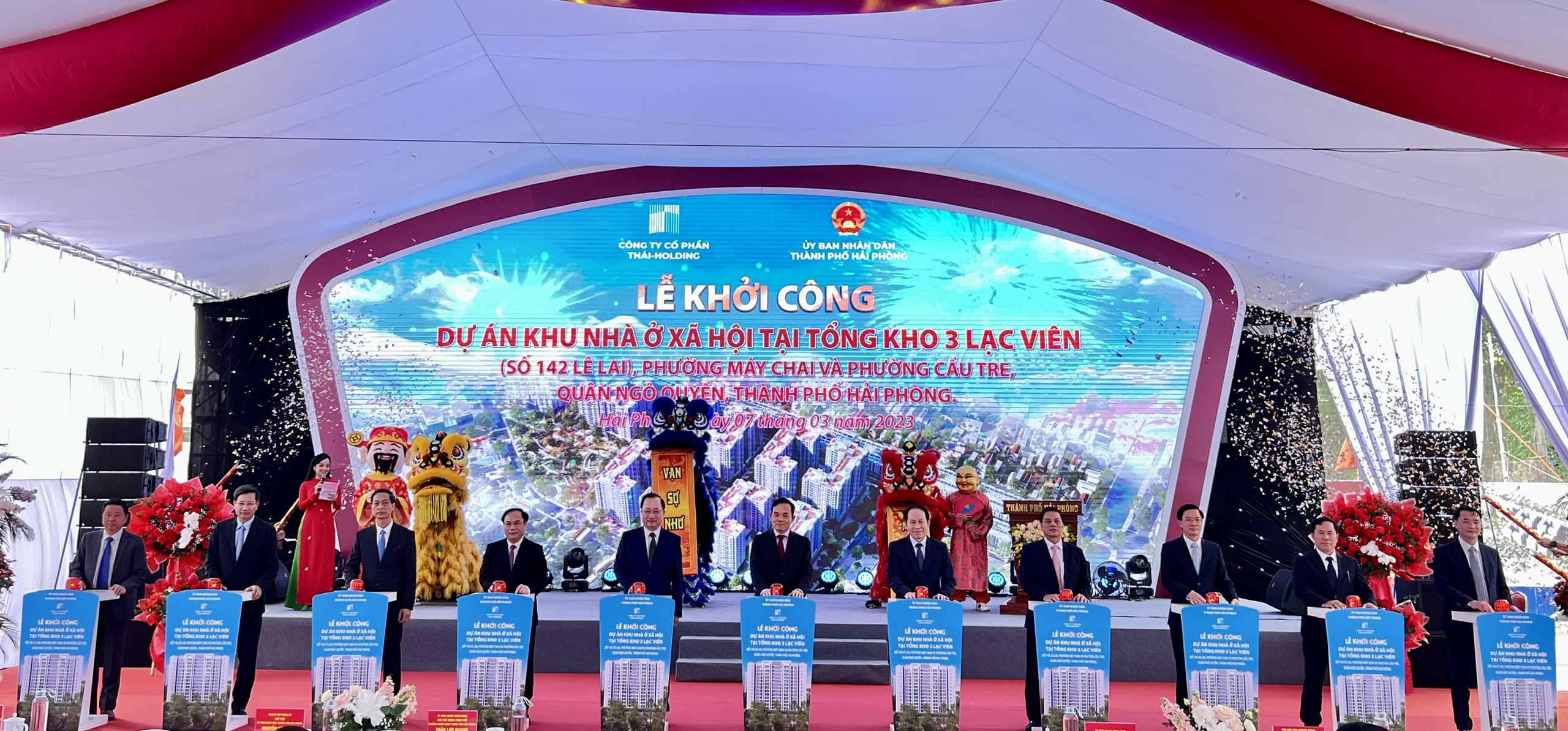 (PLVN) - Sáng nay - 7/3/2023, UBND TP Hải Phòng tổ chức Lễ khởi công Dự án Khu nhà ở xã hội (NƠXH) tại Tổng kho 3 Lạc Viên (số 142 Lê Lai, phường Máy Chai và phường Cầu Tre, quận Ngô Quyền). Các Ủy viên Trung ương Đảng: Trần Lưu Quang, Phó Thủ tướng Chính phủ, Trưởng đoàn Đoàn đại biểu Quốc hội TP Hải Phòng; Lê Tiến Châu, Bí thư Thành ủy Hải Phòng dự buổi Lễ.