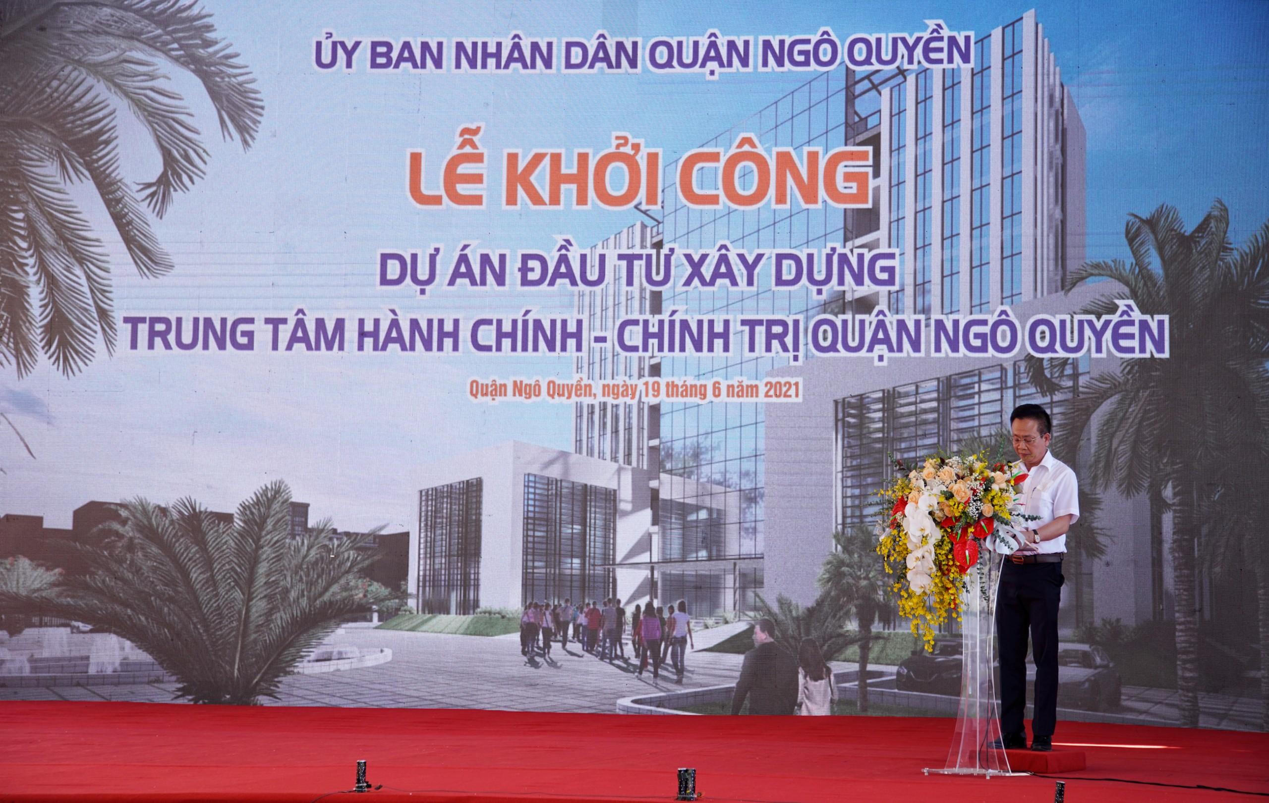 Phát biểu tại Lễ khởi công, Chủ tịch UBND quận Ngô Quyền Đinh Minh Tuấn nhấn mạnh, việc đầu tư xây dựng Trung tâm Hành Chính – Chính trị quận mới là nhu cầu cấp bách và có ý nghĩa rất quan trọng bởi hiện nay trụ sở Quận uỷ - UBND - HĐND quận đang sử dụng được xây dựng từ lâu đời. Một số hạng mục của trụ sở cũ đã xuống cấp, cải tạo chắp vá, riêng tòa nhà Quận ủy tận dụng công trình có từ thời Pháp thuộc. Do đó, sau khi hoàn thiện, Trung tâm Hành chính – Chính trị quận mới sẽ góp phần hoàn chỉnh hệ thống hạ tầng kỹ thuật, giao thông khu vực, phù hợp với quy hoạch chung của TP và quận, đồng thời tăng cường không gian xanh trong đô thị, thiết thực cải thiện và nâng cao chất lượng đời sống người dân quanh khu vực.