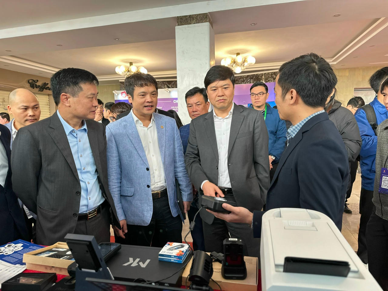 | Các đại biểu tham quan gian hàng trưng bày các tiện ích chuyển đổi số. |