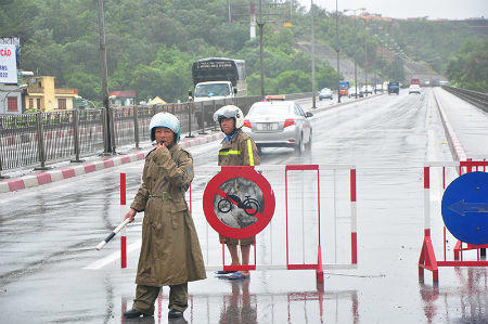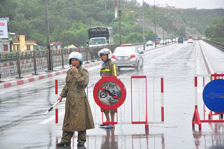 Bắt đầu từ 8 giờ 15 sáng nay (26/4), các lực lượng chức năng của tỉnh Quảng Ninh đã thực hiện việc cấm người đi bộ, phương tiện thô sơ và xe máy qua cầu Bãi Cháy, cây cầu bắc qua Cửa Lục, nối khu du lịch Bãi Cháy với TP Hạ Long (tỉnh Quảng Ninh).